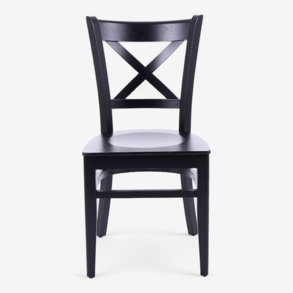The A011 chair is a stylish and durable wooden chair featuring a classic cross-back design. Its sturdy construction and comfortable seating make it ideal for both residential and commercial spaces, such as cafes, restaurants, and dining areas. Finished in a sleek black color, it complements a variety of interior styles.