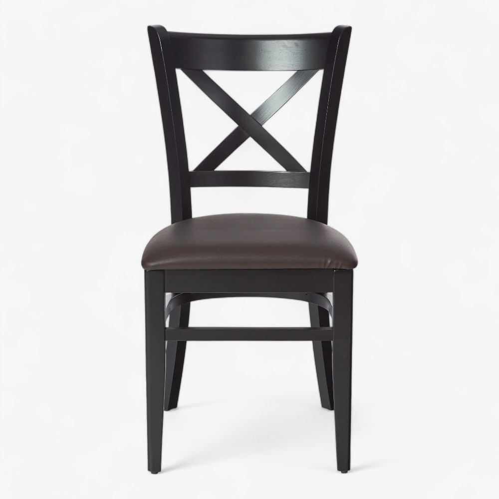 The A011 P chair features a sturdy wooden frame with a stylish cross-back design, offering durability and comfort. Ideal for dining spaces, cafes, and restaurants, it complements both modern and traditional interiors.