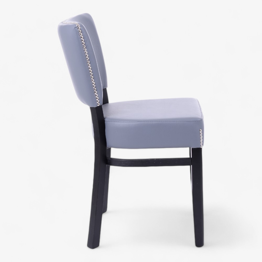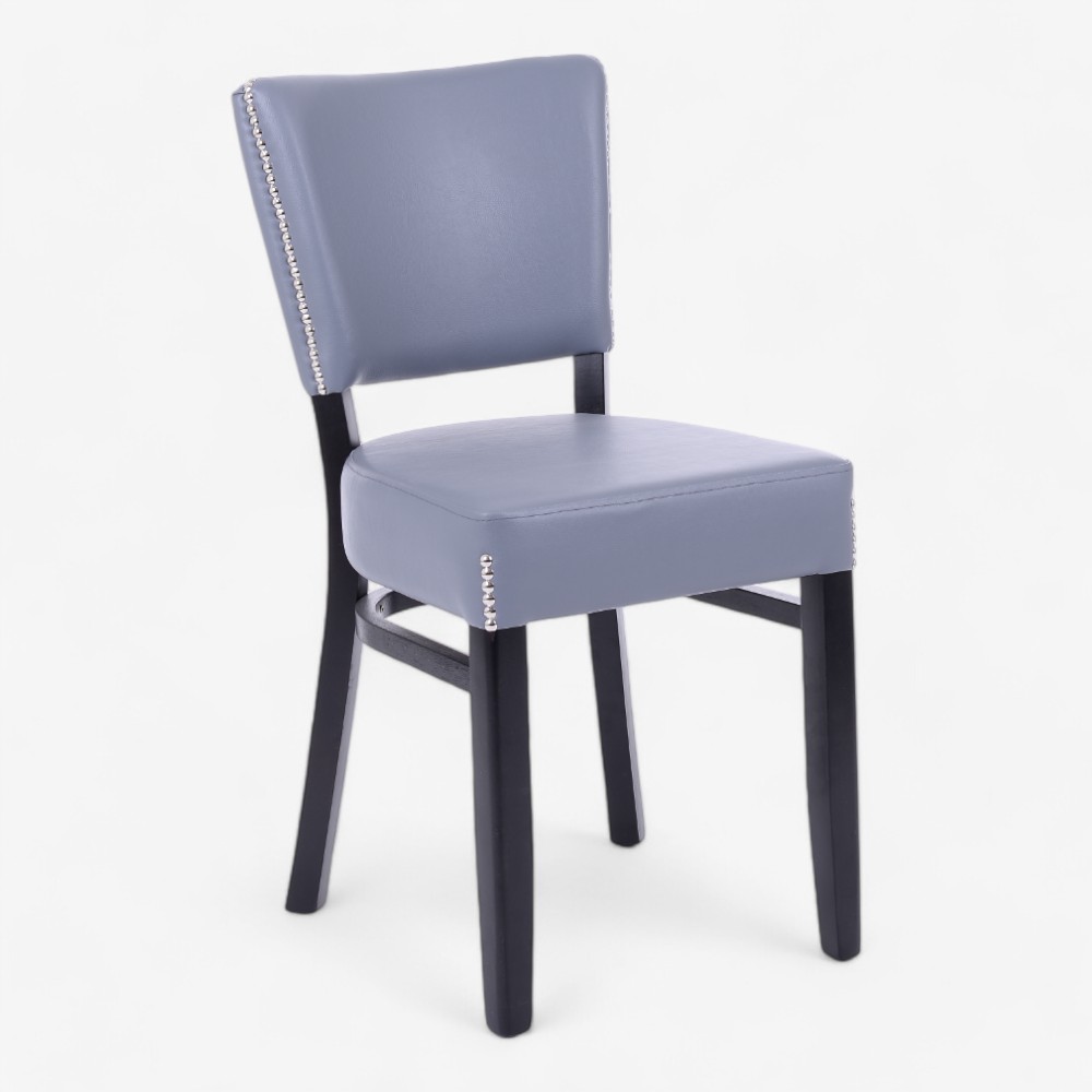 The A033 Studs chair adds a touch of elegance with its decorative nailhead trim. Perfect for fine dining establishments and luxurious interiors.