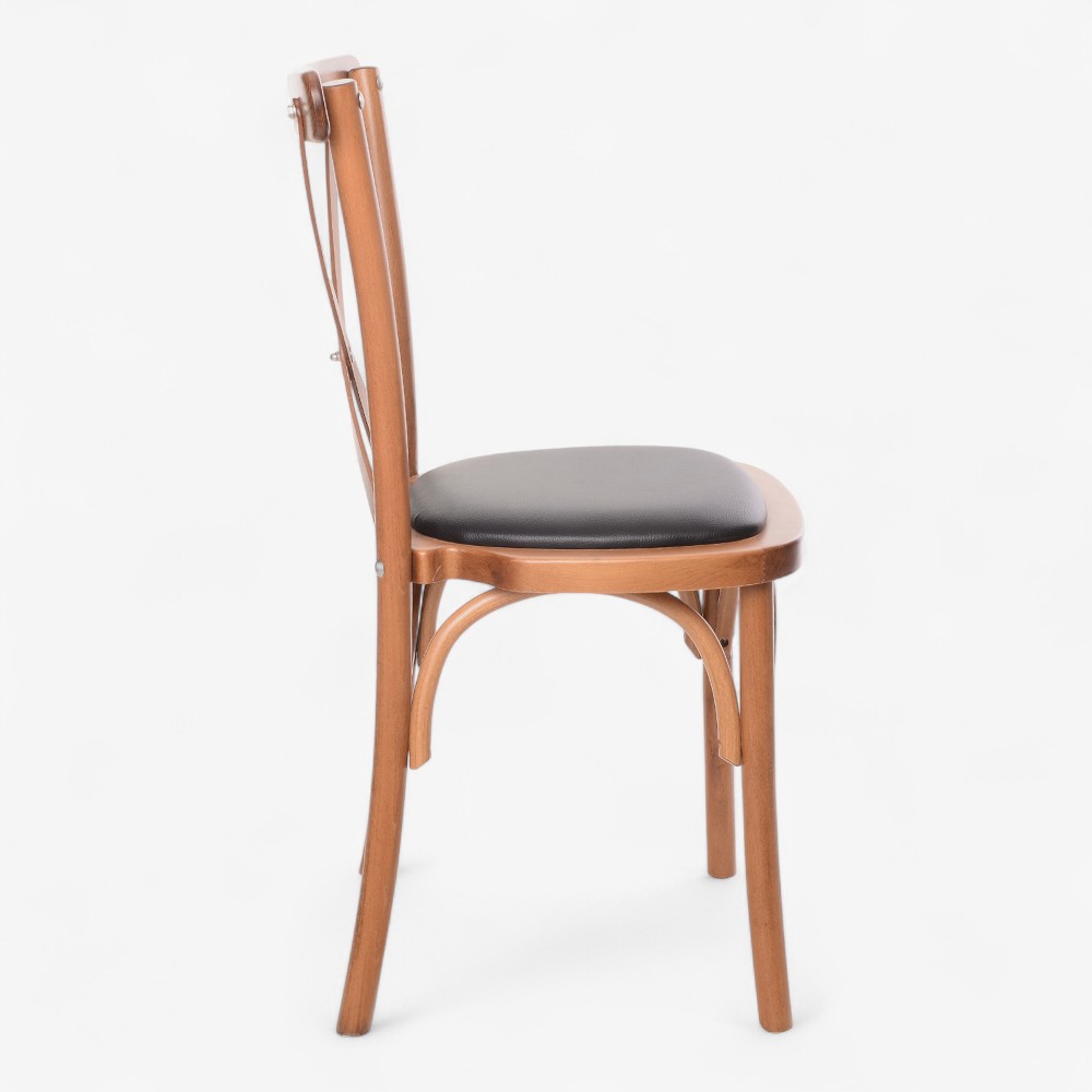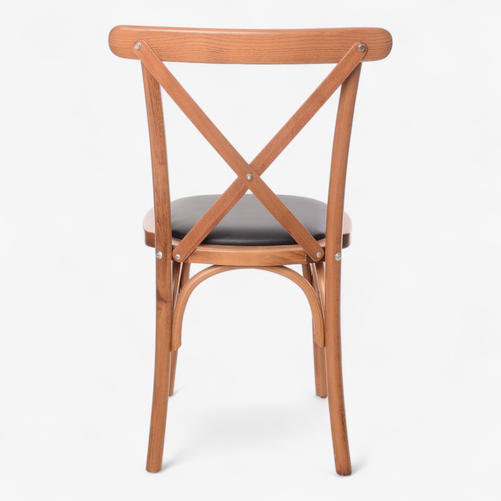 The Tehara P dining chair pairs its distinctive X-back beech-wood frame with a padded upholstered seat. This fusion of craft and comfort is perfect for upscale dining, cafés, and boutique restaurants.