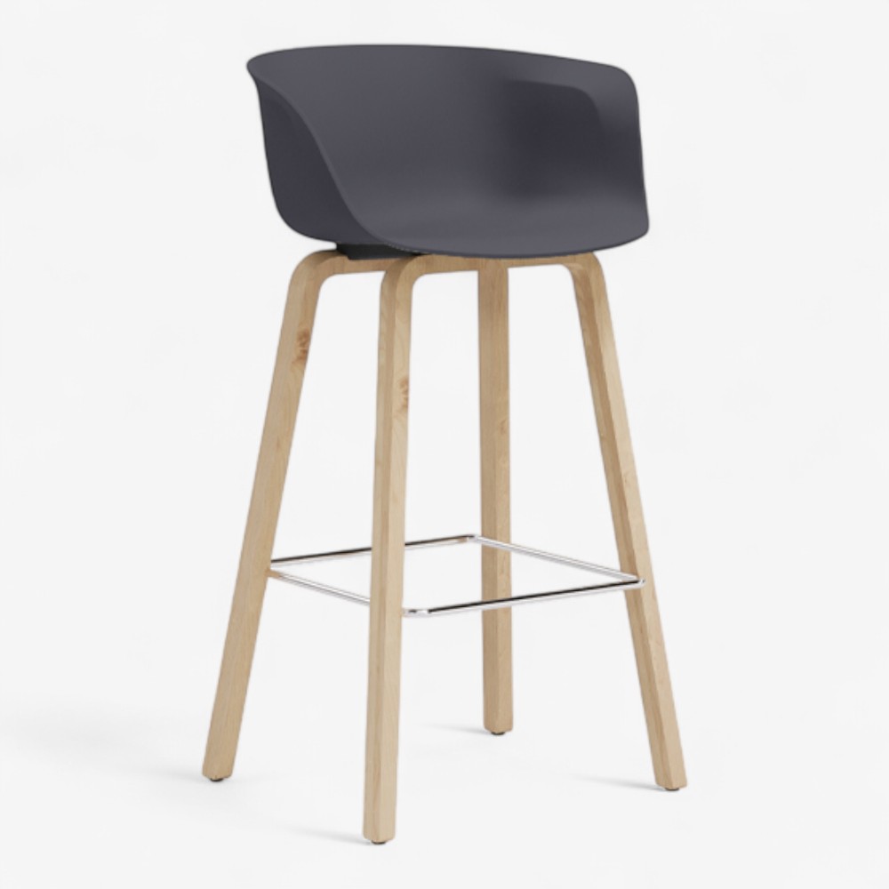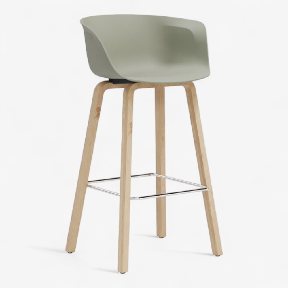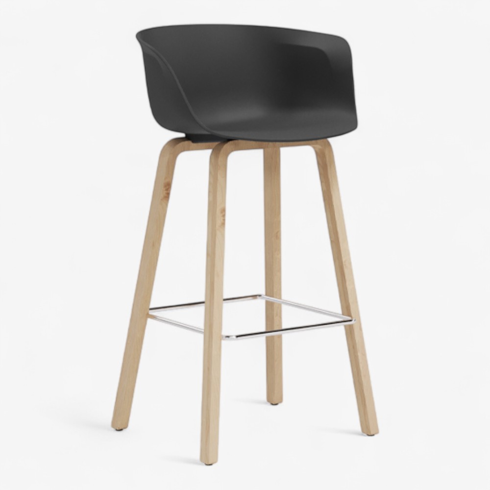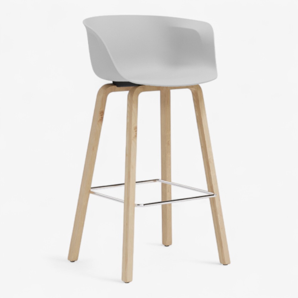 Loria 3GL is a contemporary counter stool that perfectly combines elegance and comfort. Its ergonomically shaped polypropylene shell includes integrated armrests for added support, while the solid wood legs offer a refined and minimal aesthetic. A square-shaped metal footrest enhances stability and completes the modern look. Designed for both residential and professional environments, it fits effortlessly into kitchens, bars, and restaurants. Available in a variety of color combinations, the Loria 3GL offers versatility and timeless design.