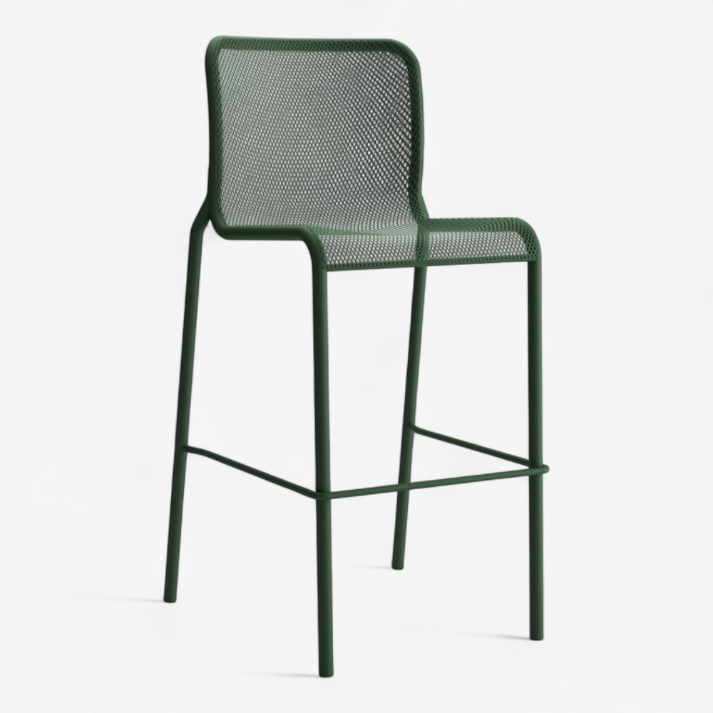 MOMO NET 3 is a tall stool engineered for stability and professional rigor. The expanded metal mesh is e-coated for all-weather protection, featuring a reinforced footrest for added structural integrity. Its light weight allows for easy handling in busy beach bars and outdoor cafes.