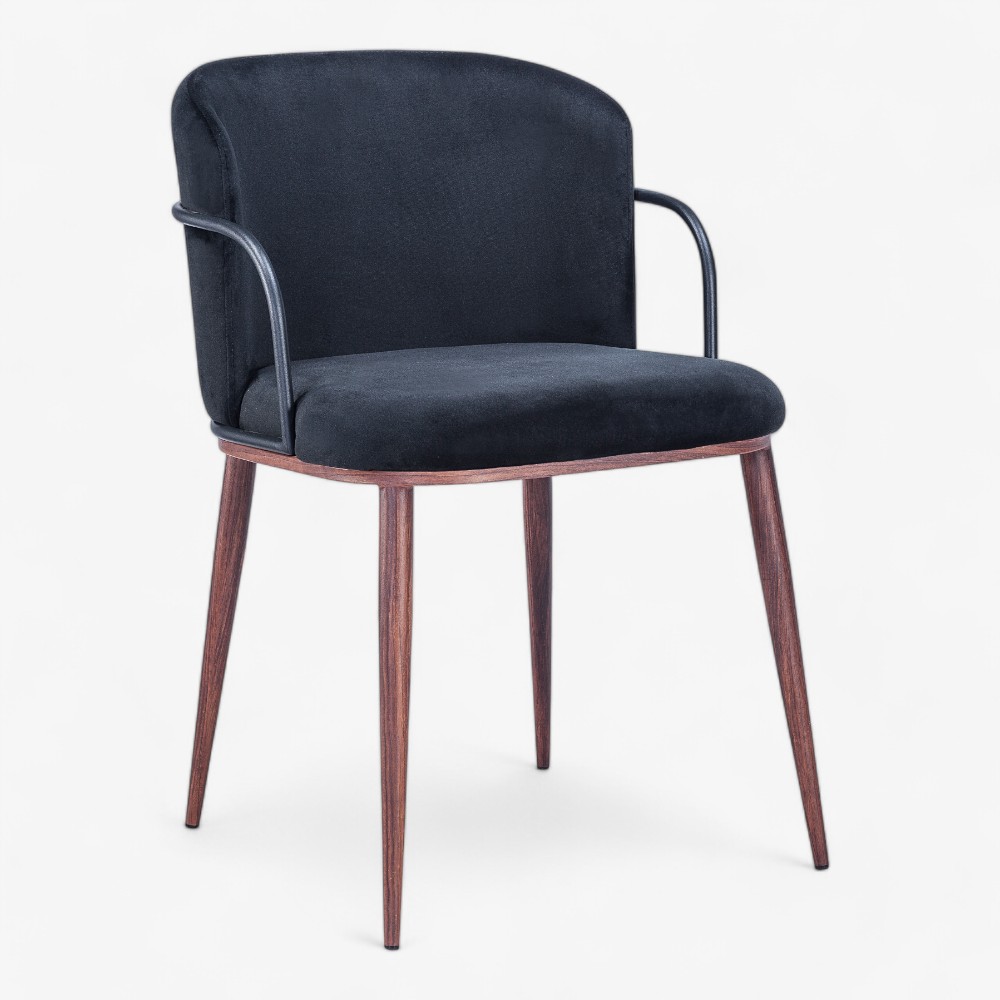 The JMB 006-C armchair is a refined combination of style and practicality. It boasts a comfortable upholstered seat, a curved backrest with seamlessly integrated armrests, and sturdy wooden legs for enhanced stability. Perfect for dining rooms, living spaces, or professional environments, this armchair adds a sophisticated and functional touch to any setting.