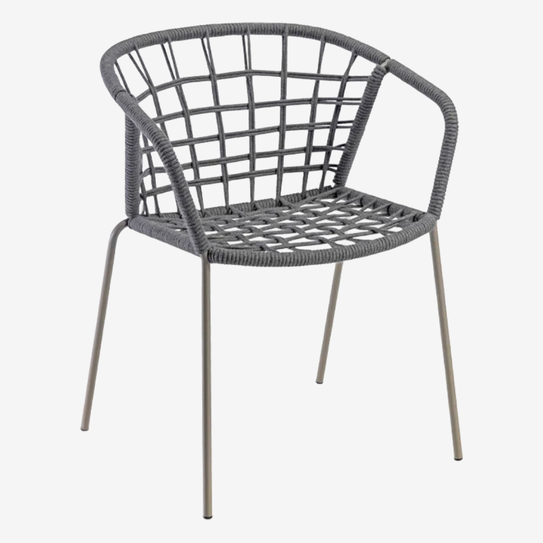 Combining artisanal rope weaving with a stackable steel structure, the SANELA B armchair is the ultimate contract seating solution. Water-repellent and stain-resistant, it provides high-end comfort and easy space management for luxury resorts and restaurants.
