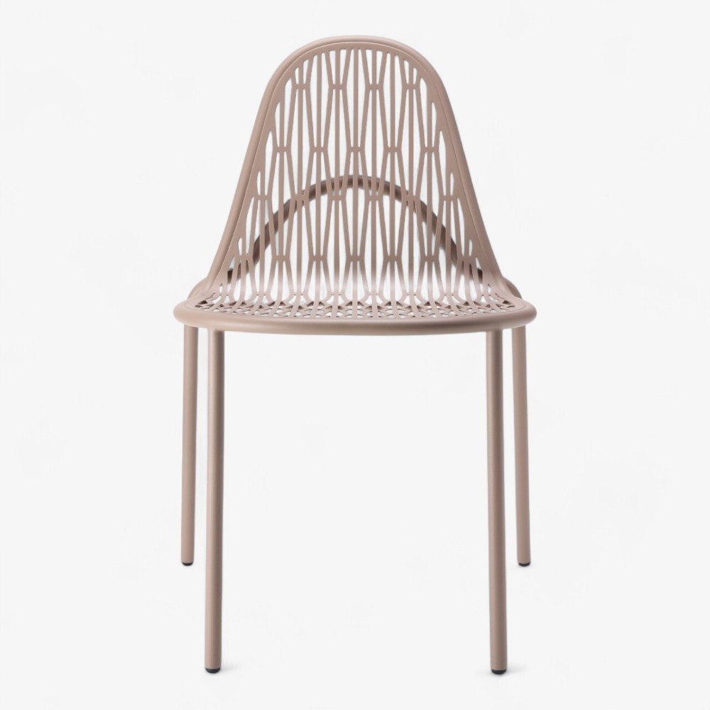 Discover the elegance and sophistication of Malvasia, an outdoor seat that transforms any terrace or garden. With its graceful and straight patterns of lights and shadows, Malvasia’s design is a true testament to innovation and craftsmanship. This seat’s backrest and seat are ingeniously crafted from a single piece of perforated and calendered metal, then welded almost invisibly to the tubular frame. This intricate process pushes the metal to its flexibility limits, softening its typically cold appearance and evoking the delicate warp and weft of fabric or the play of shadows under a tree canopy. The double-curved legs add a poetic lightness to the piece, which is further enhanced by armrests and plush cushions. Malvasia seamlessly blends aesthetic beauty with functional design, making it the perfect addition to any outdoor space.