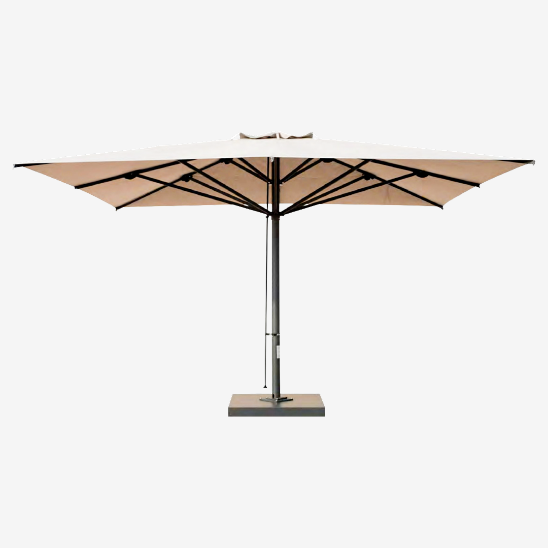 Telescopic aluminum parasol for large surfaces.