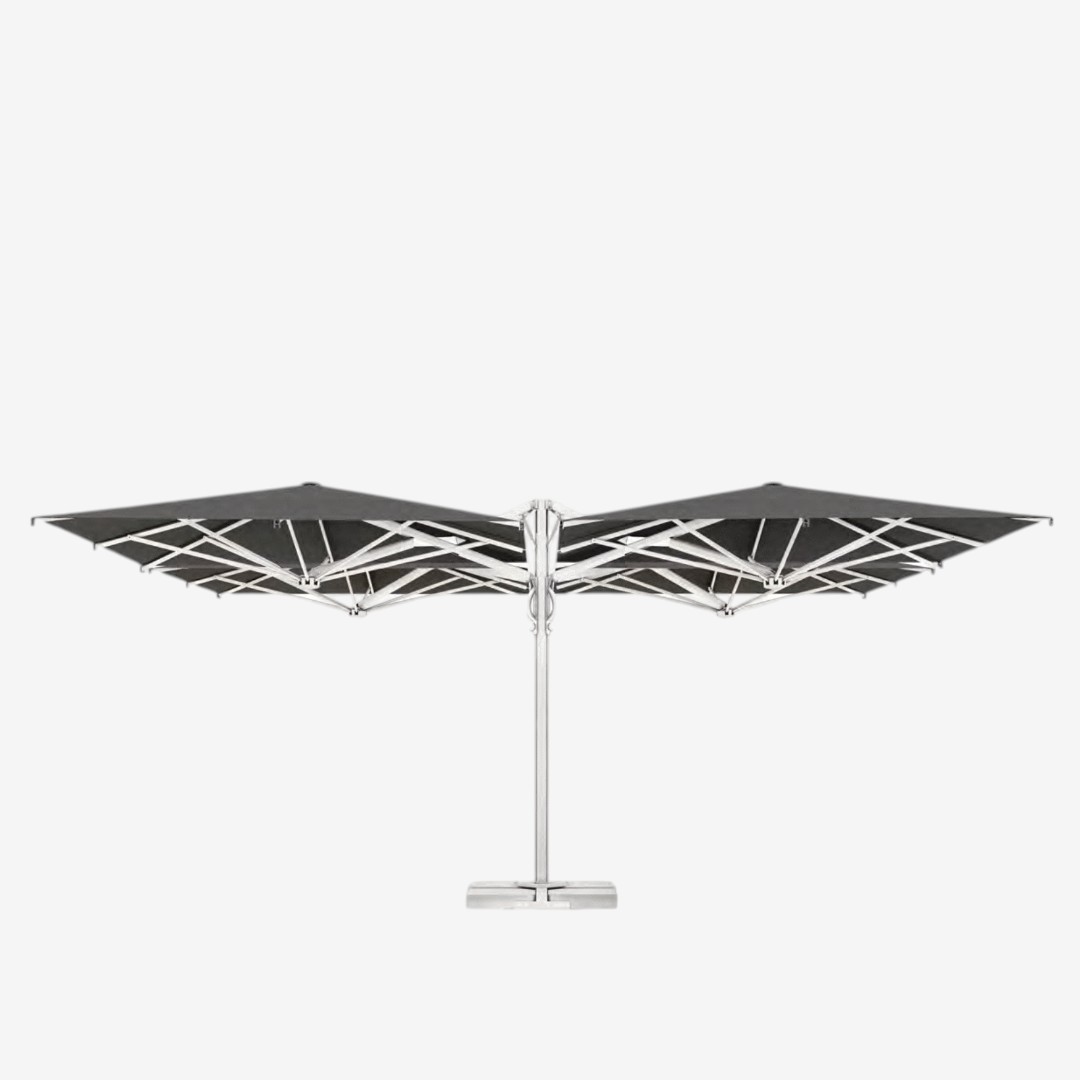 Because it is retractable, QUATTRO STARWHITE is perfect for busy commercial environments. The quadruple-parasole configuration allows you to anchor four parasols to one center support, which creates a large shaded area with a lot of stability. In addition, the aluminum frame has a stylish Starwhite finish that is modern and rugged, which is great in any type of environment.