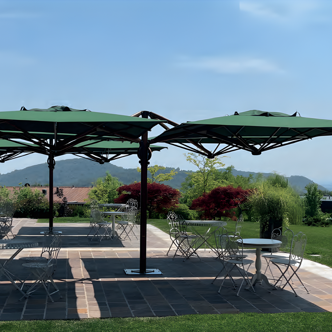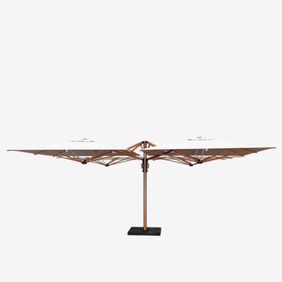 QUATTRO TIMBER’s retractable structure allows for maximum efficiency in busy commercial environments; this is achieved through the unique four in one umbrella configuration (four umbrellas attached to one centre pole) creating a large shaded area with outstanding stability and support. The aluminum frame with an extremely sturdy timber finish looks great while being immune to saltwater and UV deterioration, making it ideal for coastal and poolside locations and any other outdoor setting experiencing extreme environments.
