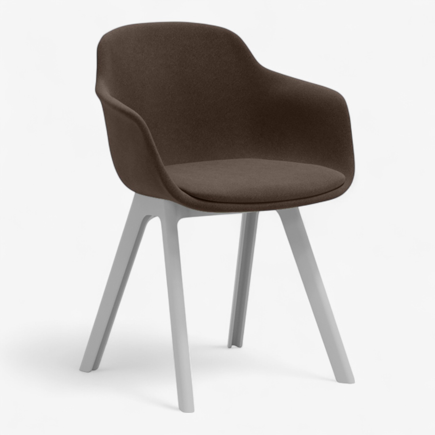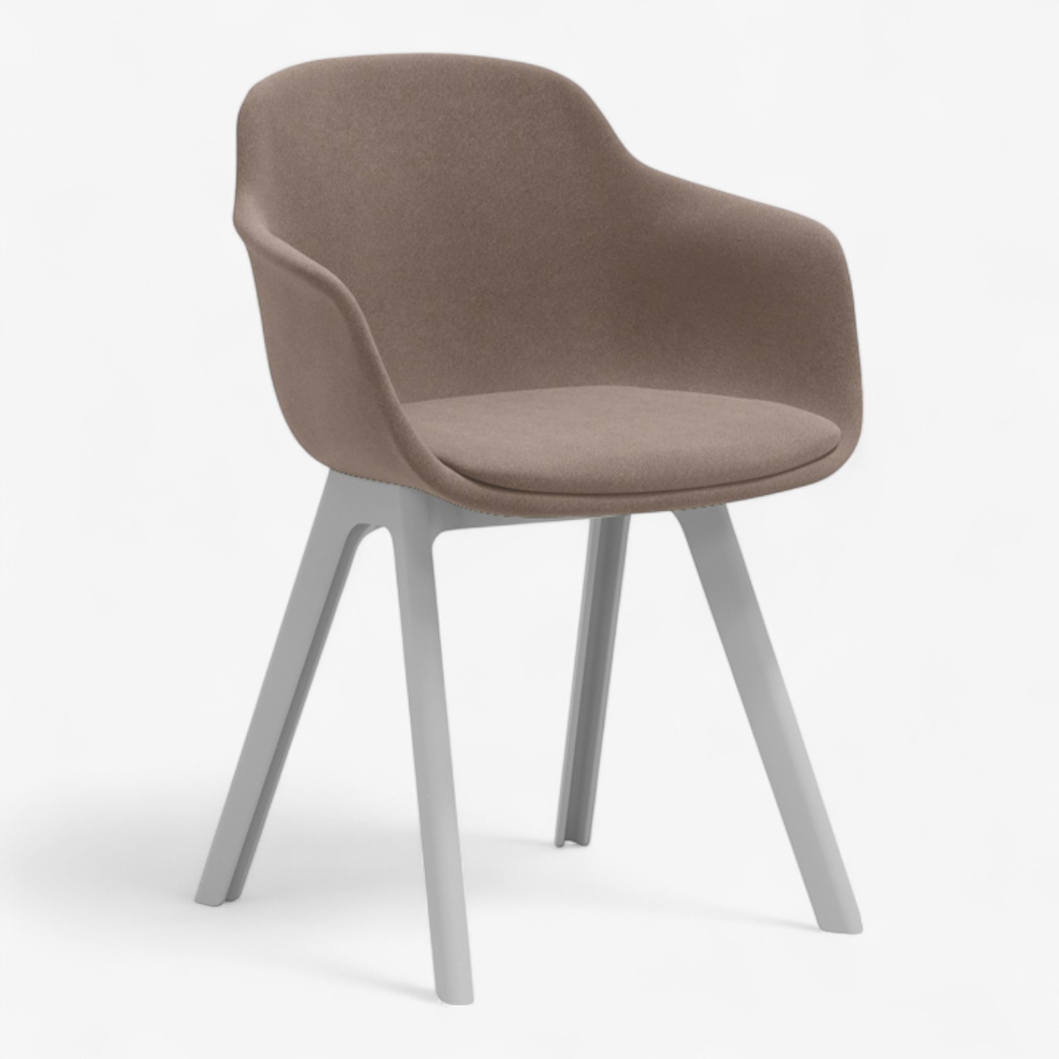 Η απαλή καμπύλη της πλάτης και του καθίσματος αγκαλιάζει το σώμα, ενώ τα ενσωματωμένα μπράτσα προσφέρουν επιπλέον στήριξη. Τα σμιλεμένα πόδια από πολυπροπυλένιο σε ανοιχτό γκρι χρώμα χαρίζουν σταθερότητα και κομψότητα.