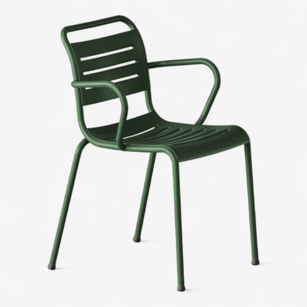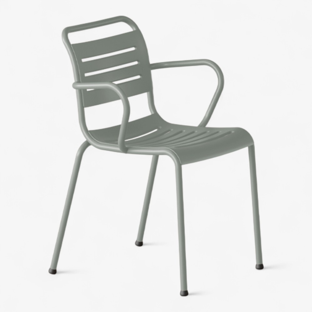 Η Re-al 2 πολυθρόνα συνδυάζει λειτουργική άνεση με βιώσιμο σχεδιασμό. Με μπράτσα υποστήριξης και κομψό προφίλ, είναι κατασκευασμένη από ανακυκλωμένο αλουμίνιο και κατάλληλη για εξωτερική χρήση. Ιδανική για βεράντες, ξενοδοχεία και χώρους φιλοξενίας με οικολογική προσέγγιση.