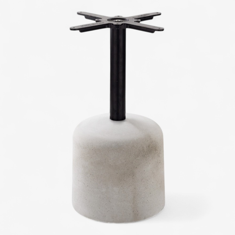 Στηρίξτε την επιφάνεια του τραπεζιού σας με απαράμιλλο στυλ και ανθεκτικότητα. Αυτή η βάση τραπεζιού από σκυρόδεμα διαθέτει κομψή κυλινδρική φόρμα με ελαφρώς ανάγλυφη υφή σε ανοιχτό γκρι χρώμα, ιδανική για μοντέρνους και μινιμαλιστικούς χώρους. Η στιβαρή κατασκευή από μπετόν προσφέρει εξαιρετική σταθερότητα, ενώ η μαύρη μεταλλική πλάκα με ηλεκτροστατική βαφή εξασφαλίζει ασφαλή και εύκολη τοποθέτηση της επιφάνειας. Ιδανική για τραπεζαρίες, τραπεζάκια σαλονιού ή βοηθητικά τραπέζια, συνδυάζει διαχρονικό σχεδιασμό με industrial αισθητική, κατάλληλη τόσο για οικιακή όσο και για επαγγελματική χρήση.