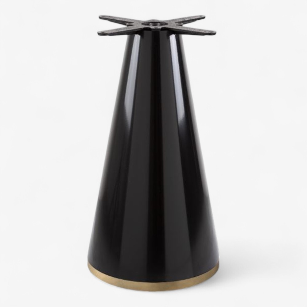 Η μεταλλική βάση τραπεζιού VBA3 δεν είναι απλώς ένα στοιχείο στήριξης—είναι μια διακοσμητική πρόταση με έντονη σχεδιαστική ταυτότητα. Ιδανική για επαγγελματικά περιβάλλοντα όπως πολυτελή εστιατόρια, boutique ξενοδοχεία, μοντέρνα γραφεία ή κομψά café, η κομψή, κωνική της φόρμα με φινίρισμα μαύρης λάκας αποπνέει διαχρονική φινέτσα. Η διακριτική ορειχάλκινη λεπτομέρεια προσθέτει μια νότα εκλεπτυσμένης πολυτέλειας, καθιστώντας την τέλεια για χώρους που εκτιμούν τη λεπτομέρεια και το υψηλό design. Συνδυάζεται εύκολα με επιφάνειες από ξύλο, μάρμαρο ή γυαλί και ανταποκρίνεται άψογα στις απαιτήσεις επαγγελματικών εφαρμογών.