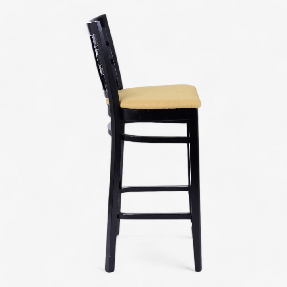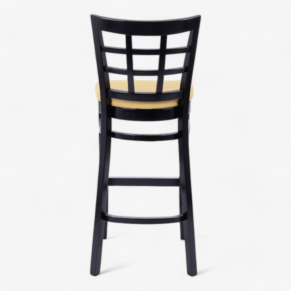Κομψό σκαμπό μπαρ με σχέδιο πλέγματος στην πλάτη.