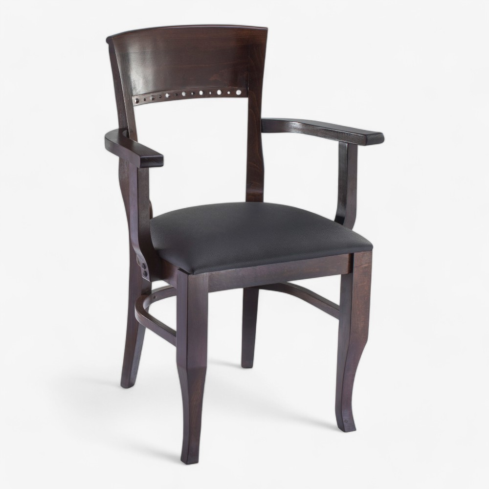 Η πολυθρόνα 006A-W-BLK είναι η επιτομή του στυλ και της άνεσης, κατασκευασμένη από ξύλο υψηλής ποιότητας με πολυτελές μαύρο ταπετσαρισμένο κάθισμα. Ο σχεδιασμός της περιλαμβάνει στιβαρά μπράτσα και υποστηρικτική πλάτη, καθιστώντας την ιδανική για τραπεζαρίες, γραφεία ή επαγγελματικούς χώρους. Ιδανική για να προσθέσει μια πινελιά κομψότητας και πρακτικότητας σε κάθε περιβάλλον, αυτή η πολυθρόνα προσφέρει διαχρονική κομψότητα και εργονομική άνεση.