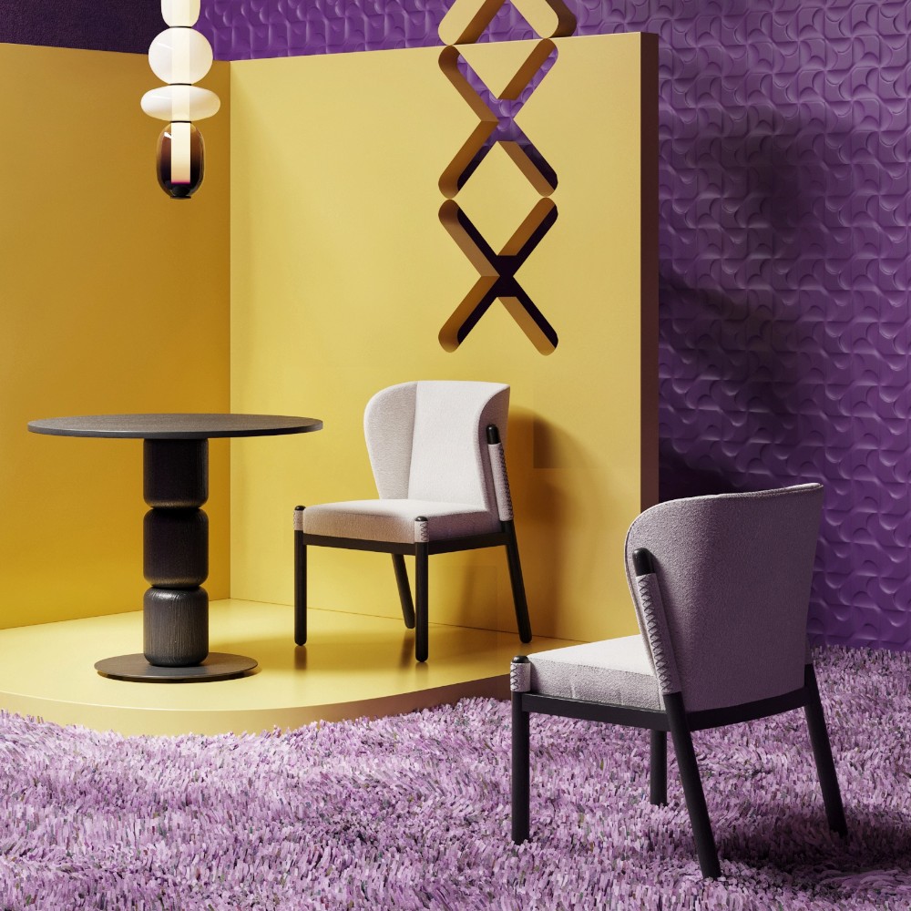 Τα στρογγυλεμένα ξύλινα πόδια και η ταπετσαρισμένη της φόρμα προσδίδουν δυναμική αλλά φιλόξενη αίσθηση — ιδανική για τραπεζαρίες εστιατορίων, αίθουσες συσκέψεων, boutique ξενοδοχεία και σύγχρονους οικιακούς χώρους. Κατασκευασμένη με εργονομία και στυλ, διατίθεται σε ποικιλία υλικών και χρωμάτων για κάθε περιβάλλον.