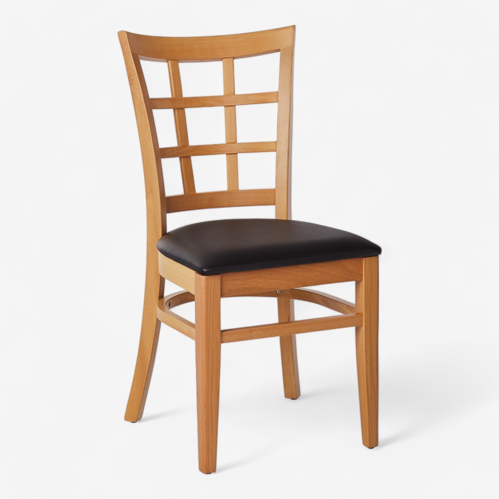 Η Καρέκλα Lattice είναι μια κομψή και ανθεκτική επιλογή καθίσματος, σχεδιασμένη για εστιατόρια, καφέ και επαγγελματικούς χώρους. Με μοναδικό σχεδιασμό πλέγματος στην πλάτη, προσφέρει αισθητική και εργονομική υποστήριξη. Η στιβαρή ξύλινη κατασκευή και το μαξιλαρωτό κάθισμα εγγυώνται άνεση και αντοχή στον χρόνο.