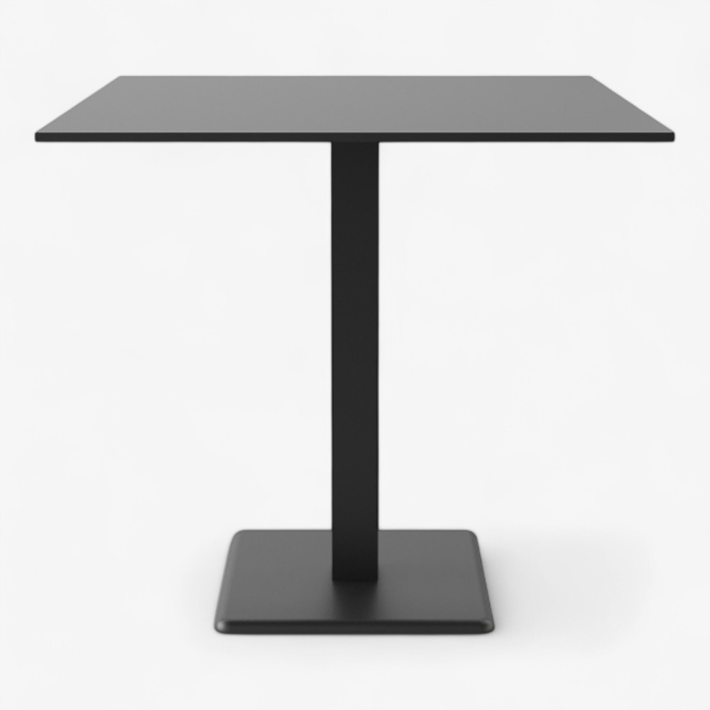 Η βάση διατίθεται σε τετράγωνη ή ορθογώνια μορφή και υποστηρίζει στρογγυλές ή τετράγωνες επιφάνειες έως 90 cm, ή ορθογώνιες έως 80×140 cm, προσφέροντας ευελιξία διαμόρφωσης. Η επιφάνεια είναι διαθέσιμη σε HPL ή laminate, υλικά εξαιρετικά ανθεκτικά για χρήση σε επαγγελματικούς χώρους.