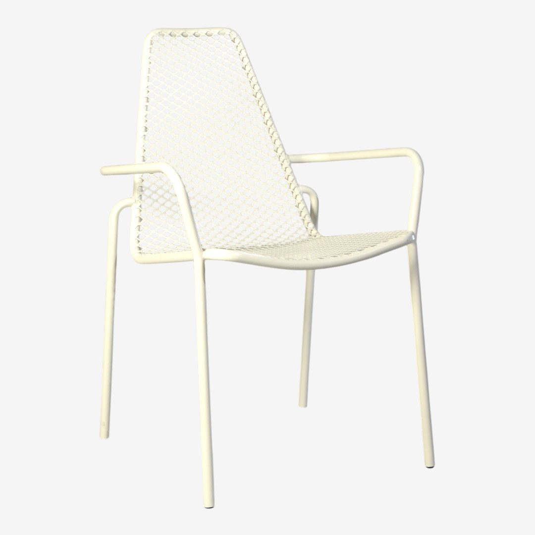 Η DALIA ARMREST διαθέτει ελαφρύ, λιτό μεταλλικό σκελετό και εργονομική διάτρητη πλάτη. Έχει σχεδιαστεί για εντατική επαγγελματική χρήση και αποτελεί ιδανική επιλογή για καφέ, υπαίθριους χώρους και χώρους εστίασης σε βεράντες, χάρη στην αντοχή και τη διαχρονική της εμφάνιση.