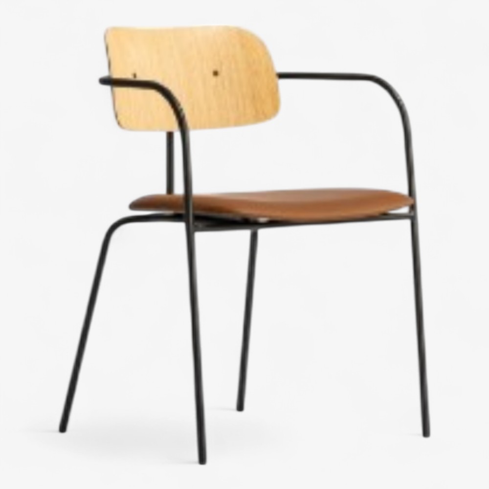 Η πολυθρόνα Max συνδυάζει την απλότητα με το βιομηχανικό στυλ, διαθέτοντας κυρτό κάθισμα και πλάτη από κόντρα πλακέ με μεταλλικό μαύρο σκελετό. Ιδανική για επαγγελματικούς χώρους, όπως καφέ ή μοντέρνες τραπεζαρίες.