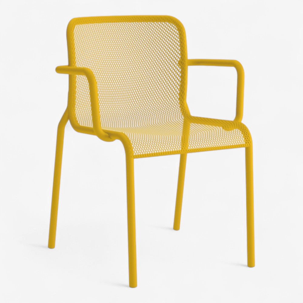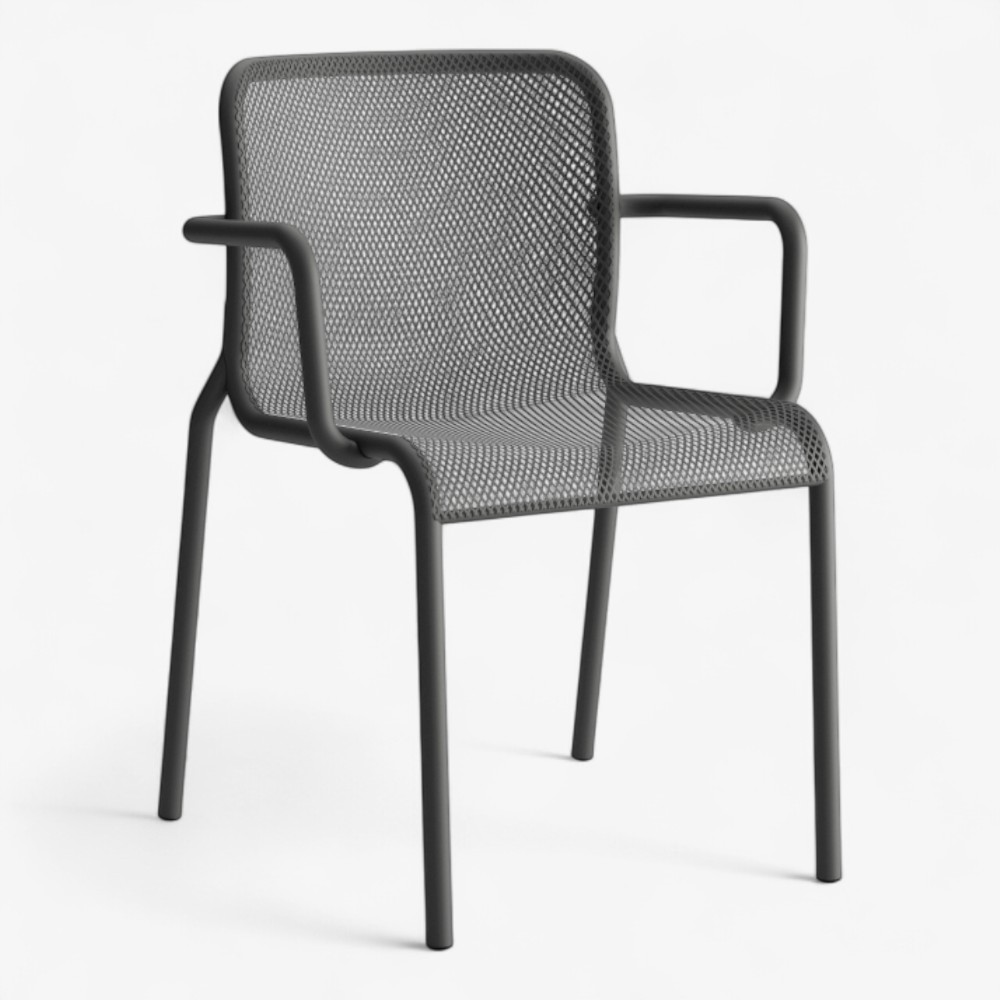 Με εργονομικά μπράτσα, η MOMO NET 2 προσφέρει ανώτερη άνεση σε μεταλλικό πλέγμα. Ο σκελετός με επίστρωση e-coat εξασφαλίζει αντοχή σε κάθε κλίμα, καθιστώντας την ιδανική για καλοκαιρινές βεράντες και επαγγελματικούς χώρους φιλοξενίας.