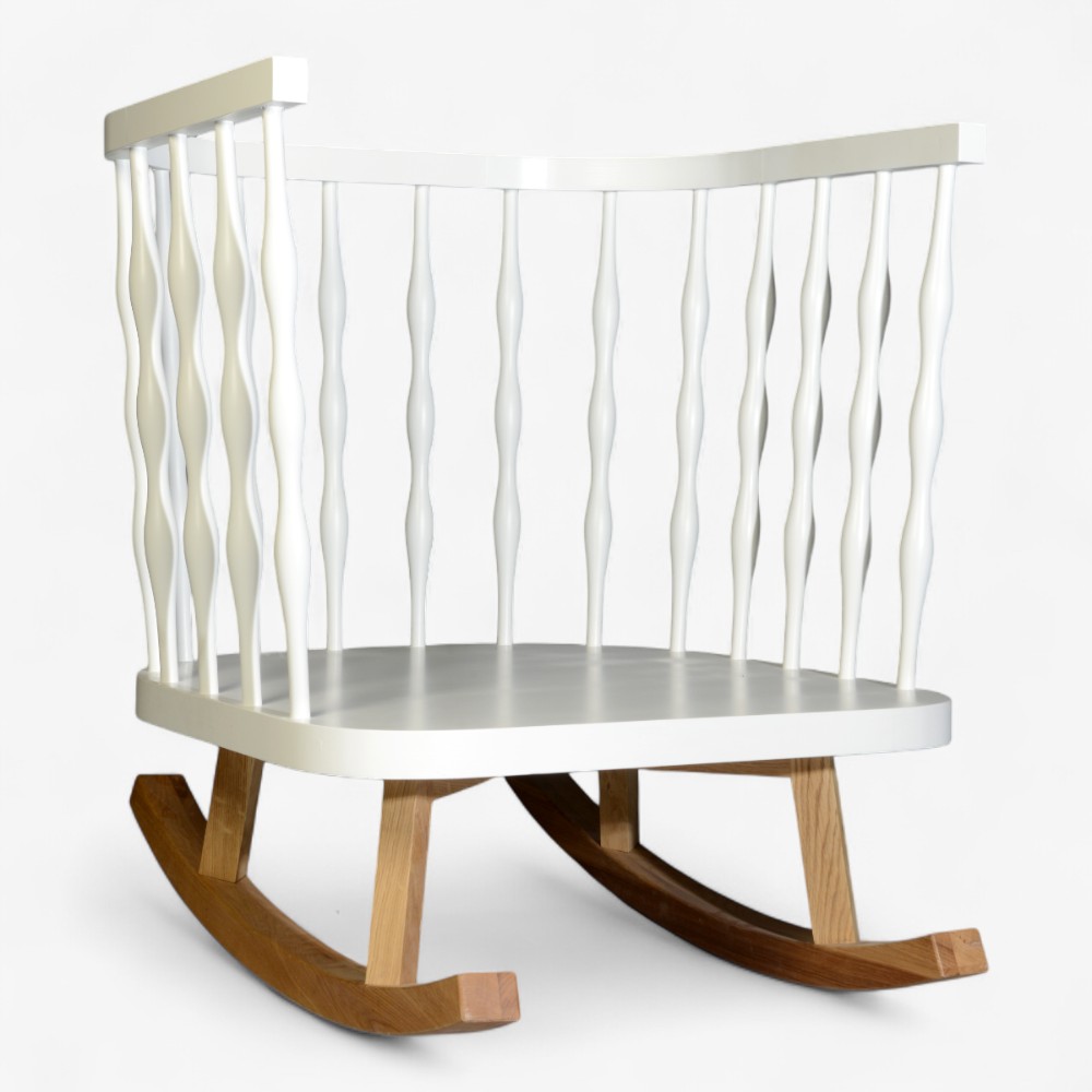 Η ROCKING είναι μια σύγχρονη εκδοχή της κλασικής κουνιστής πολυθρόνας. Με λευκή πλάτη και ξύλινη βάση, δίνει παιχνιδιάρικο αλλά και κομψό χαρακτήρα σε σαλόνια, χώρους χαλάρωσης και καφέ.