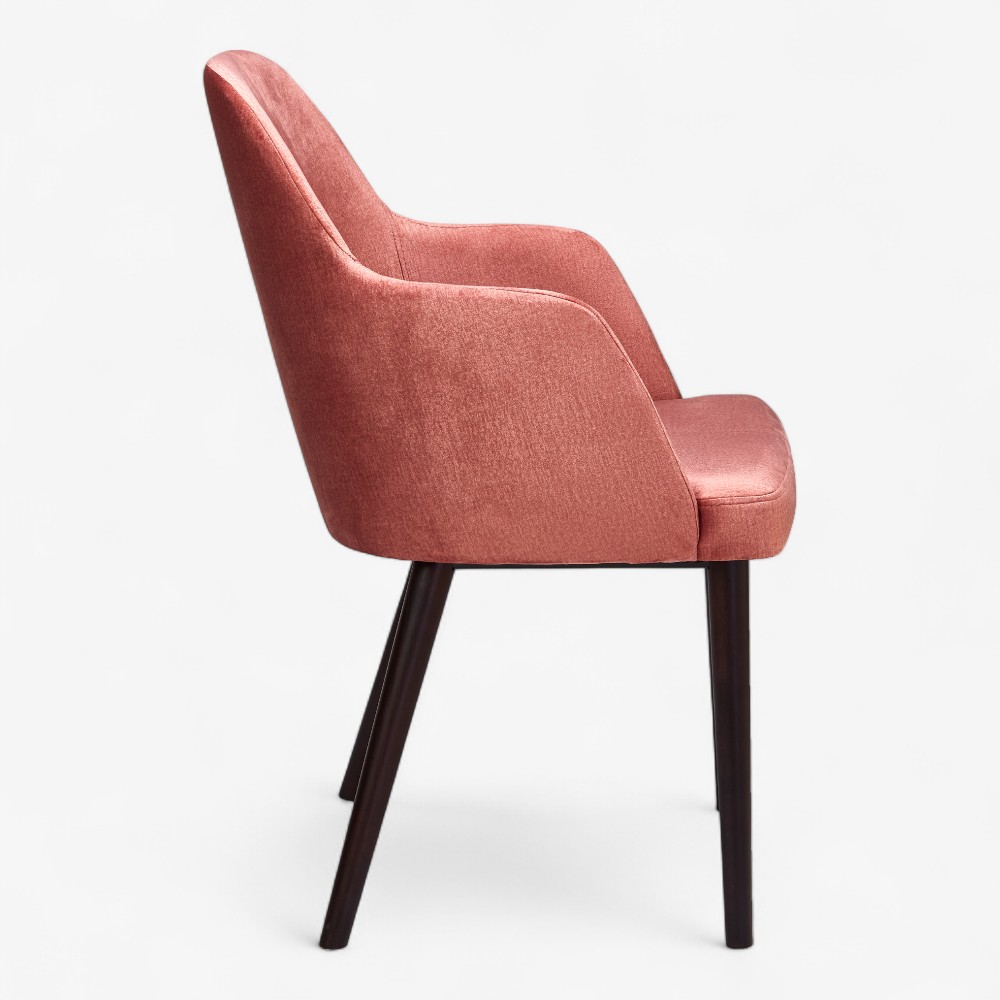 Η πολυθρόνα Sandra SFP διαθέτει απαλή καμπυλωτή πλάτη και επενδεδυμένη έδρα σε κομψά ξύλινα πόδια με χρυσές λεπτομέρειες. Το γλυπτικό και άνετο design της ταιριάζει σε lounge, αίθουσες αναμονής και boutique ξενοδοχεία.