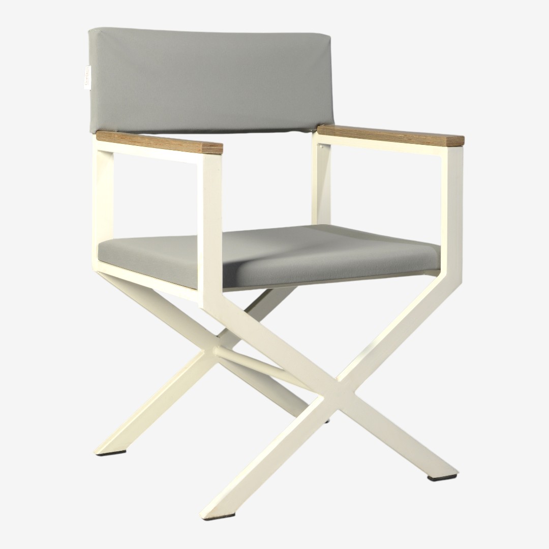Η THALASSA είναι μια εκλεπτυσμένη επαγγελματική πολυθρόνα, εμπνευσμένη από τις διαχρονικές καρέκλες σκηνοθέτη. Διαθέτει στιβαρό μεταλλικό σκελετό και απλό γεωμετρικό σχεδιασμό, δημιουργώντας άνετο κάθισμα και πλάτη με επένδυση. Η THALASSA έχει σχεδιαστεί για χρήση σε παραθαλάσσια περιβάλλοντα, όπως beach resorts, ξενοδοχεία και αποκλειστικούς υπαίθριους χώρους εστίασης.