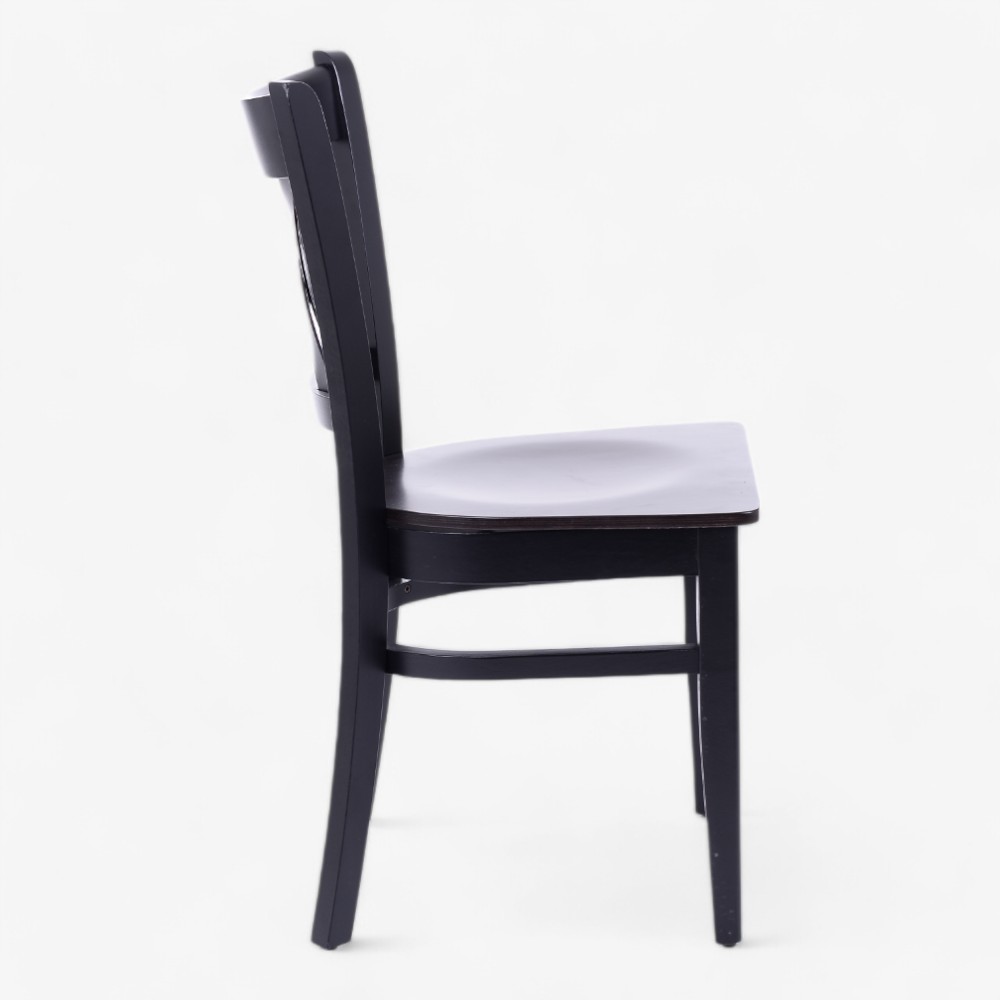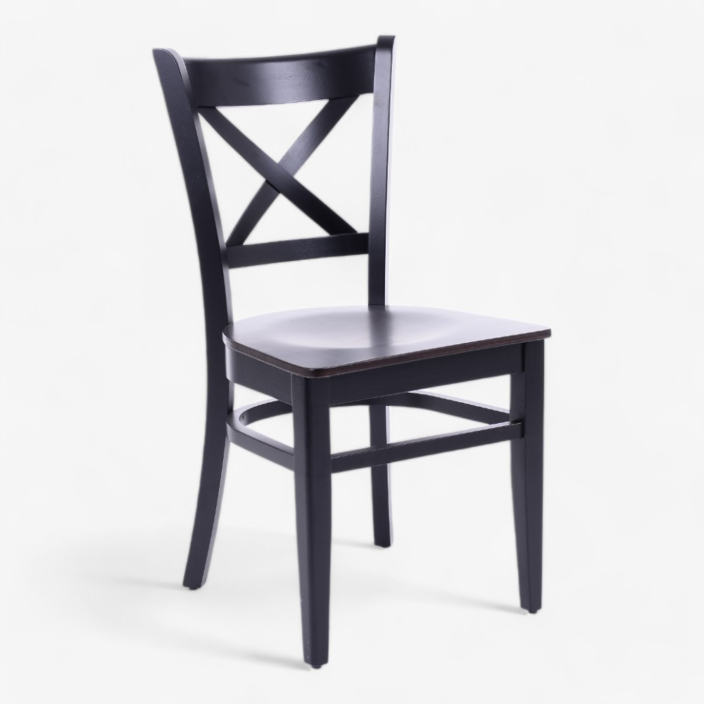 Η καρέκλα A011 είναι μια κομψή και ανθεκτική ξύλινη καρέκλα με κλασικό σχέδιο σταυρωτής πλάτης. Η στιβαρή της κατασκευή και η άνετη έδρα την καθιστούν ιδανική για οικιακούς και επαγγελματικούς χώρους, όπως καφετέριες, εστιατόρια και τραπεζαρίες. Το κομψό μαύρο φινίρισμά της ταιριάζει σε διάφορα στυλ διακόσμησης.