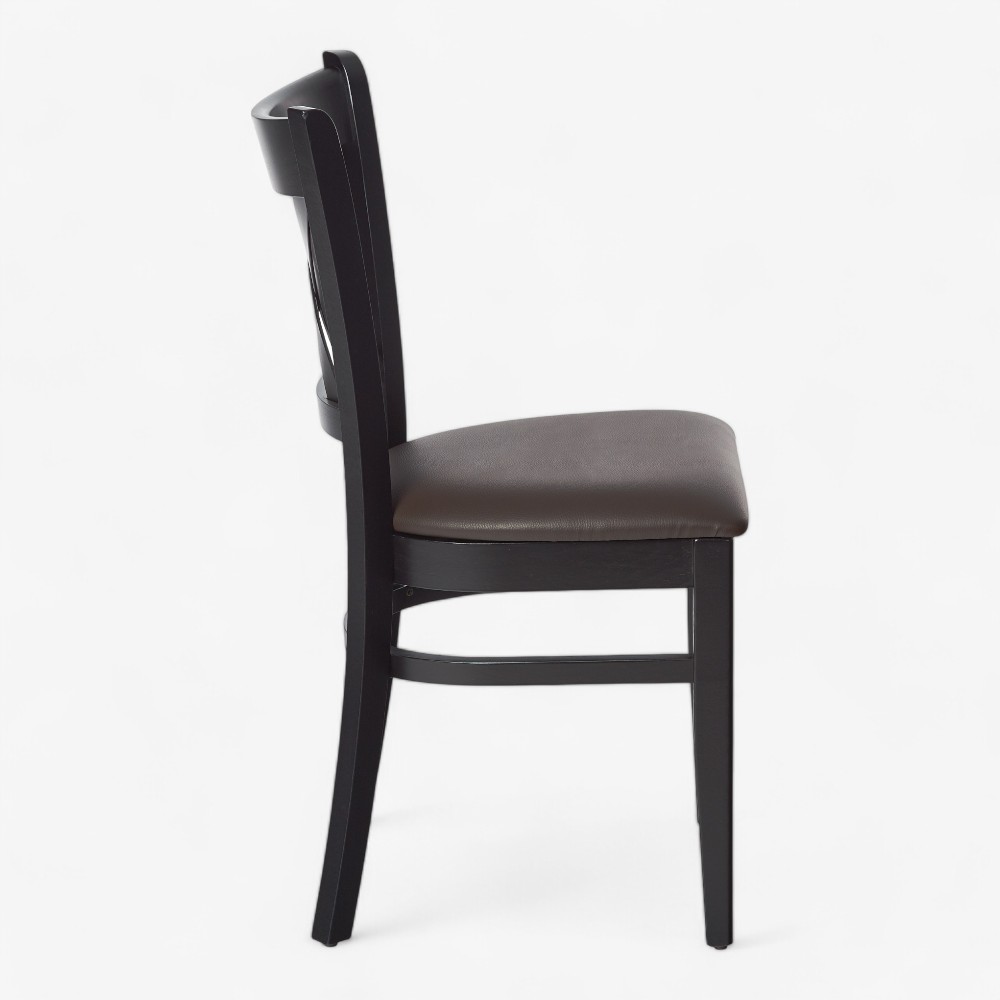 Η καρέκλα A011 P διαθέτει ανθεκτικό ξύλινο σκελετό με κομψό σχέδιο σταυρωτής πλάτης, προσφέροντας ανθεκτικότητα και άνεση. Ιδανική για τραπεζαρίες, καφετέριες και εστιατόρια, ταιριάζει τόσο σε μοντέρνους όσο και σε παραδοσιακούς χώρους.