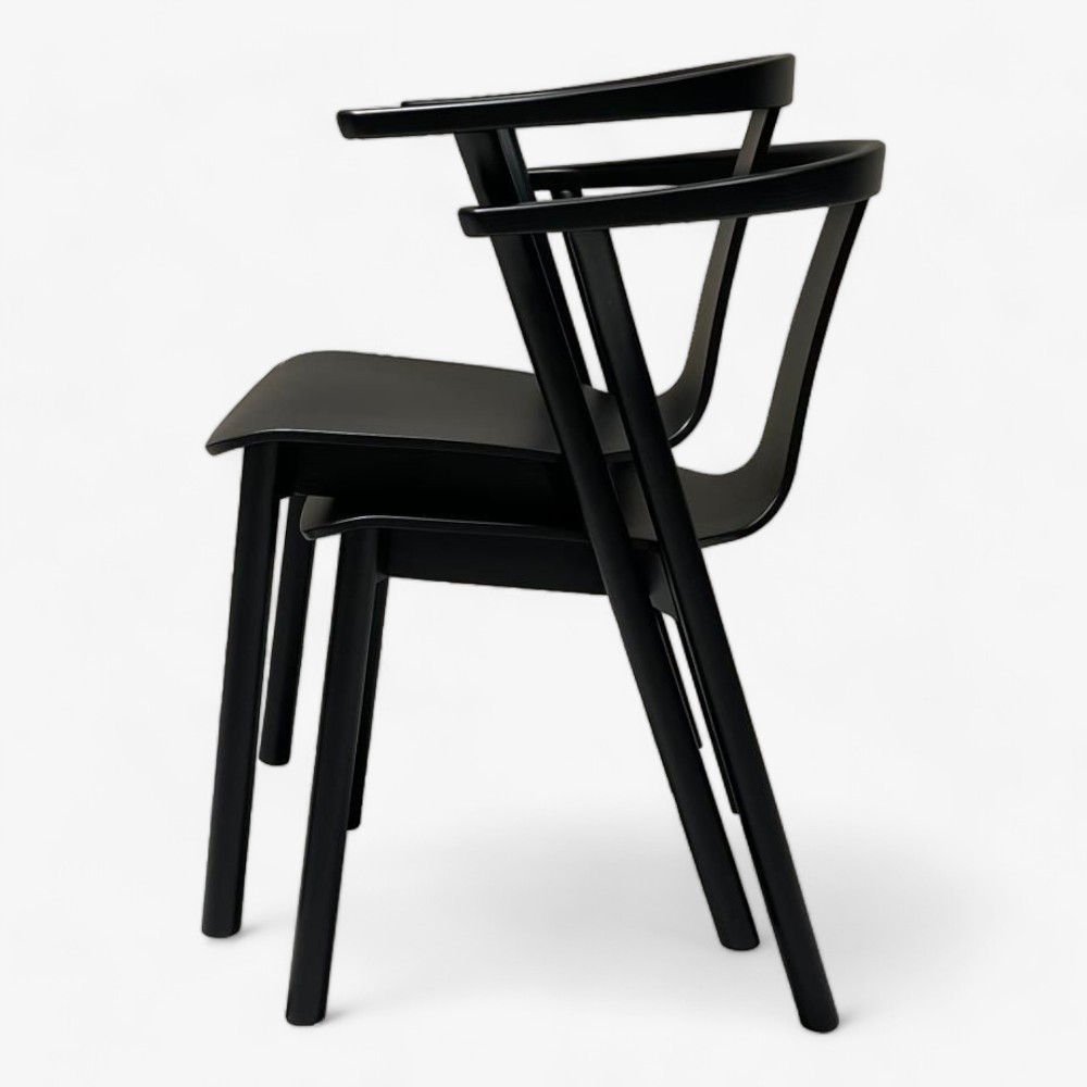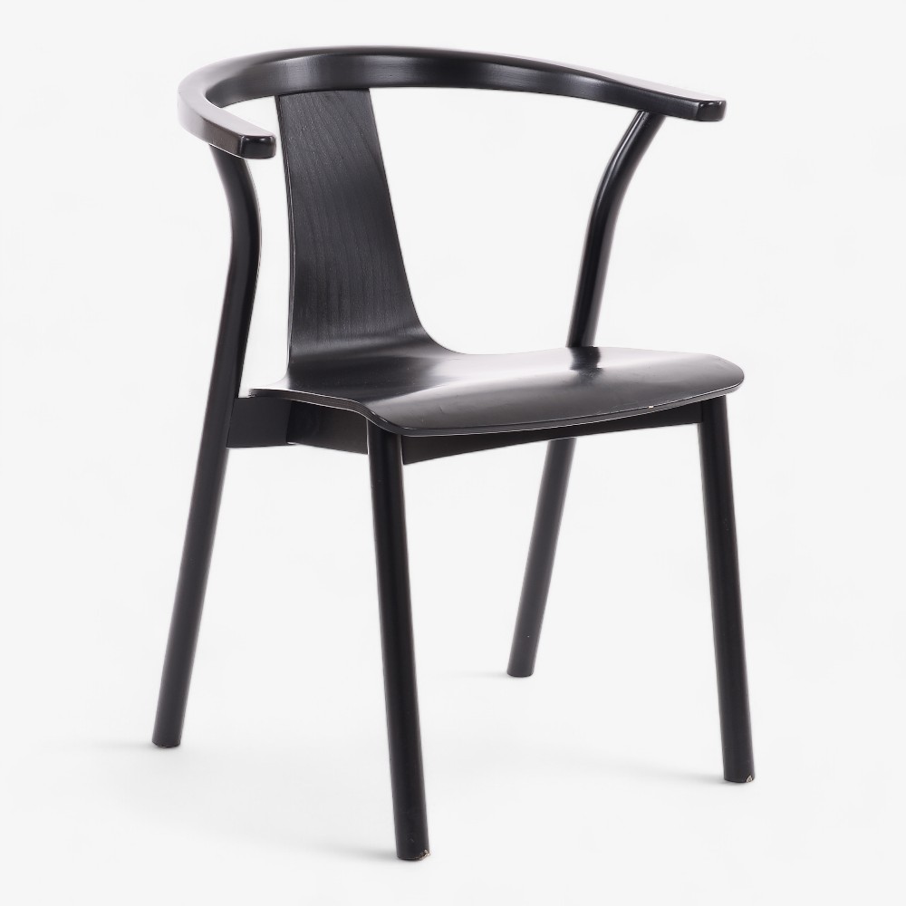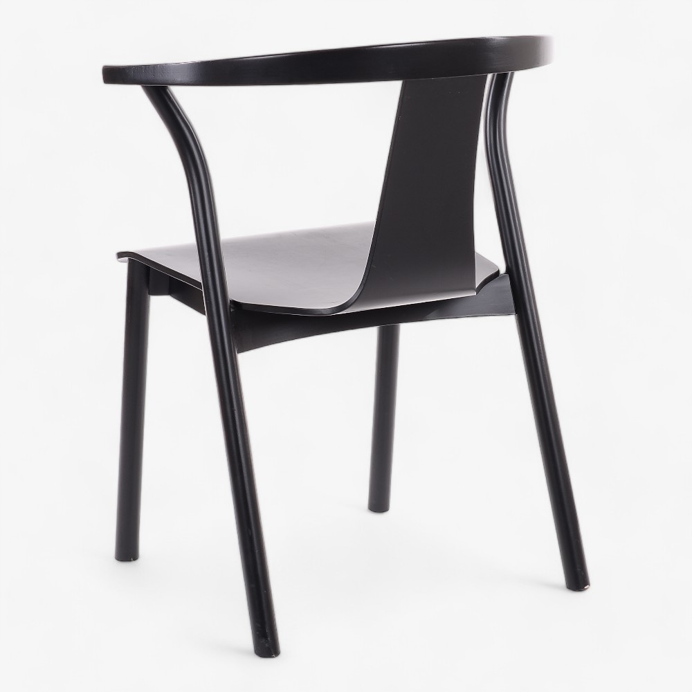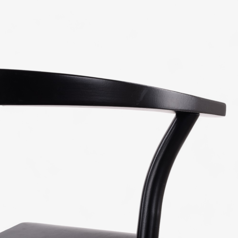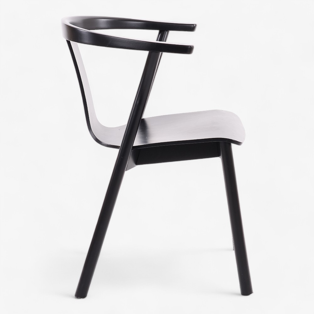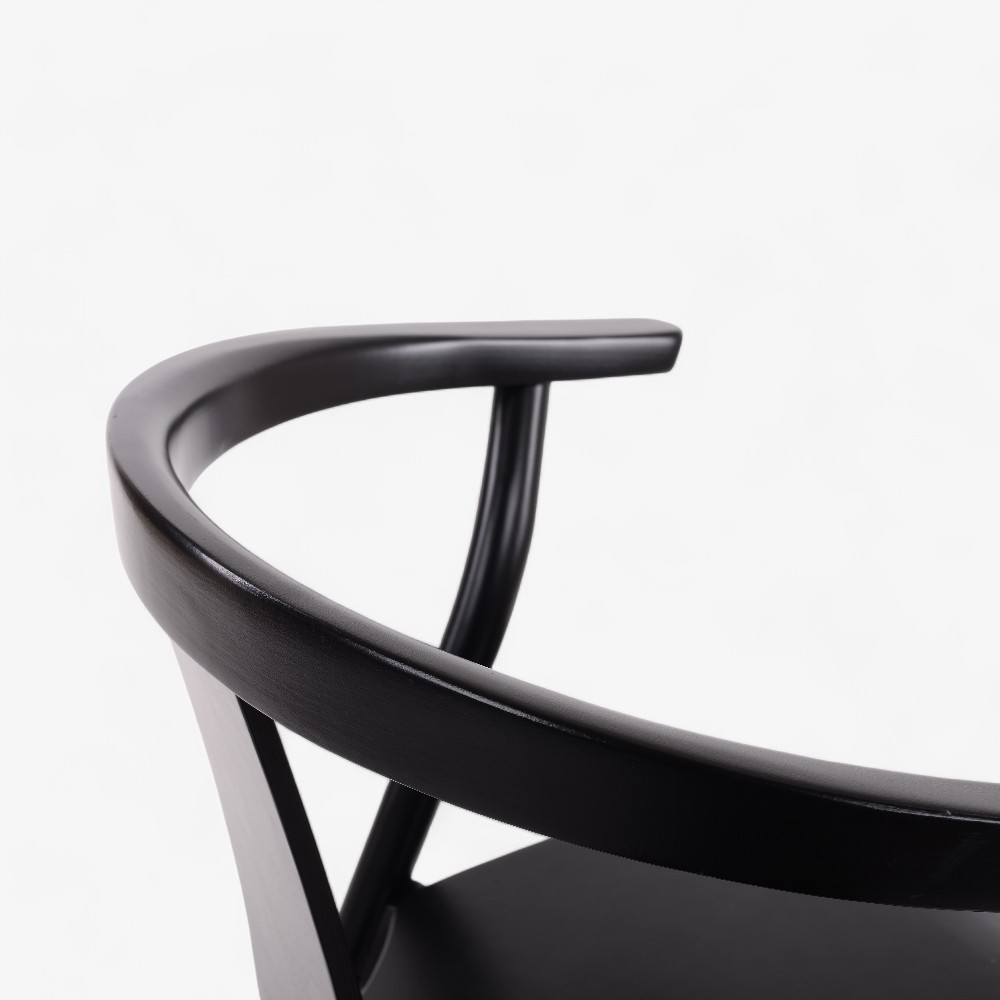Ανακαλύψτε την επιτομή της σύγχρονης κομψότητας με την μαύρη ξύλινη καρέκλα μας που διαθέτει κομψά καμπυλωτά μπράτσα και μινιμαλιστικό σχεδιασμό. Αυτή η καρέκλα αποτελεί δήλωση στυλ που συνδυάζει σύγχρονη αισθητική με απόλυτη άνεση, ιδανική για οποιονδήποτε κομψό χώρο. Κατασκευασμένη από ξύλο υψηλής ποιότητας, το κομψό μαύρο φινίρισμα και οι ρευστές γραμμές της προσφέρουν μια σοφιστικέ εμφάνιση που συμπληρώνει κάθε διακόσμηση. Είτε χρησιμοποιείται σε τραπεζαρία, γραφείο ή σαλόνι, αυτή η καρέκλα υπόσχεται αντοχή και διαχρονική ομορφιά. Φωτίστε το σπίτι σας με αυτό το κομψό και λειτουργικό κομμάτι, σχεδιασμένο να αναβαθμίσει τη διακόσμησή σας σε νέα ύψη.