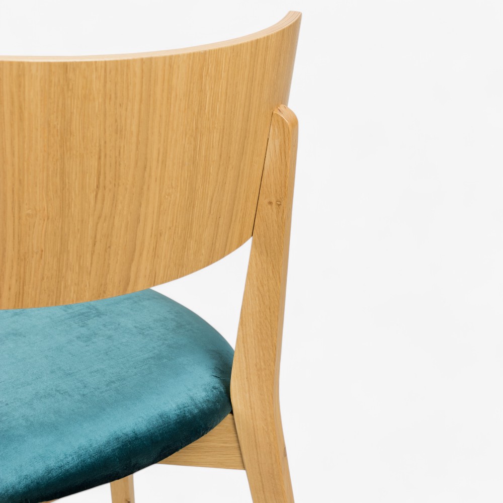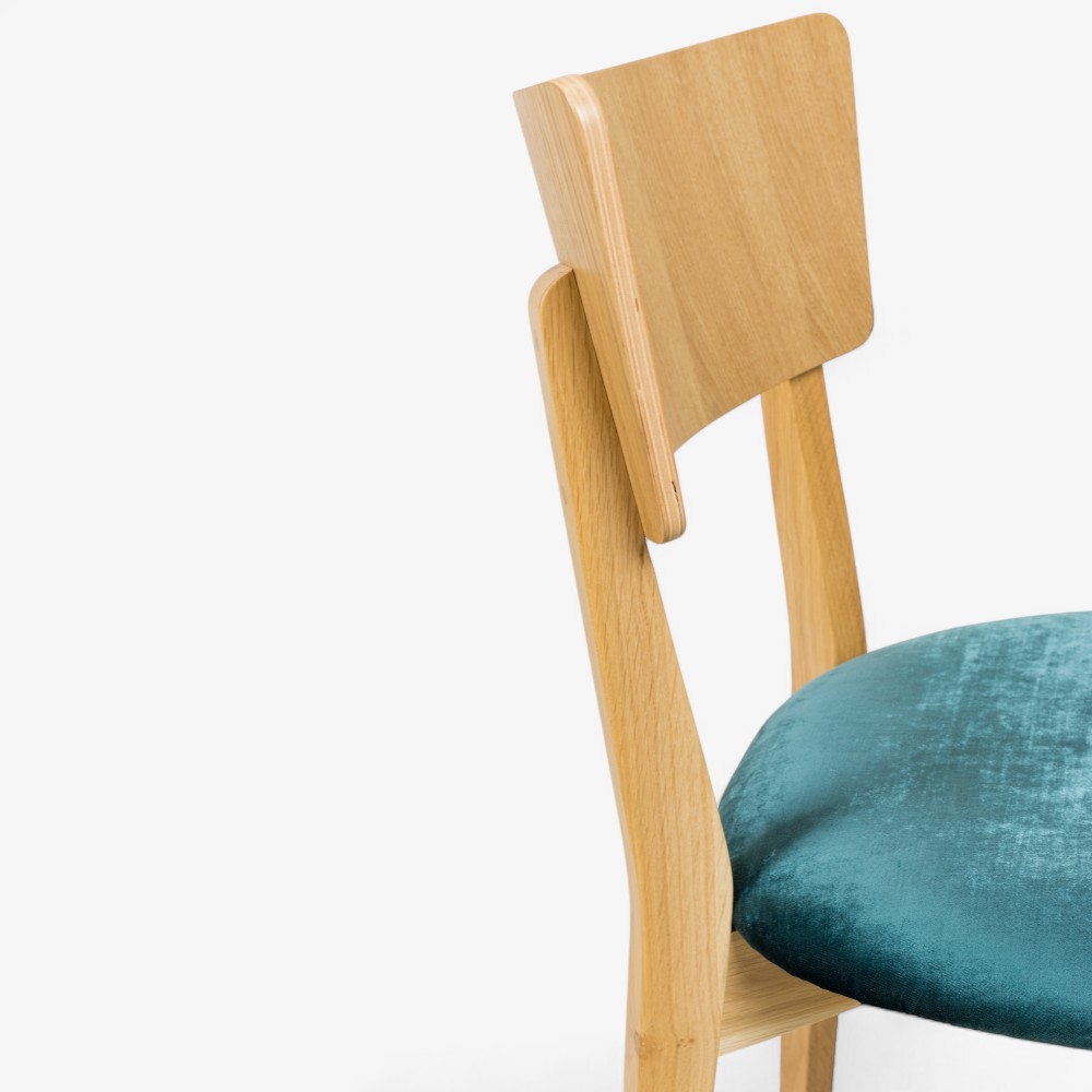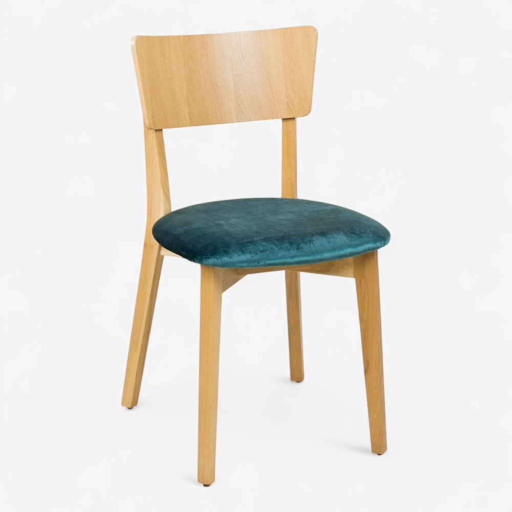Ξύλινη καρέκλα με τιρκουάζ βελούδινη επένδυση