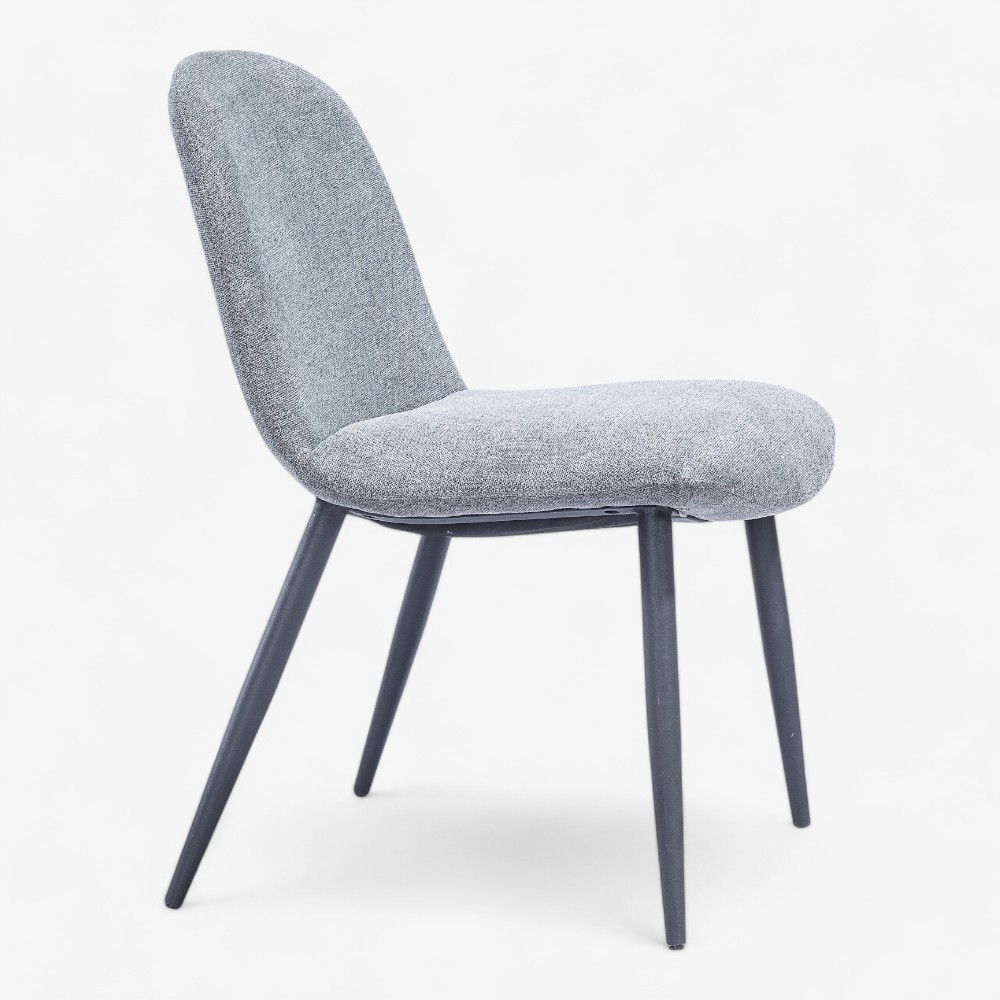 Η καρέκλα JMB 009-C συνδυάζει κομψό, σύγχρονο σχεδιασμό με απαλή καμπύλη πλάτη και άνετο μαξιλάρι καθίσματος με ταπετσαρία από ποιοτικό μαλακό ύφασμα σε γκρι απόχρωση. Στηρίζεται σε στιβαρά μεταλλικά πόδια με μινιμαλιστική, κωνική σιλουέτα, αποτελώντας μια ευέλικτη επιλογή για τραπεζαρίες, χώρους εργασίας ή οποιοδήποτε μοντέρνο εσωτερικό. Το ουδέτερο χρώμα και ο εργονομικός σχεδιασμός της εξασφαλίζουν άνεση και αισθητική.