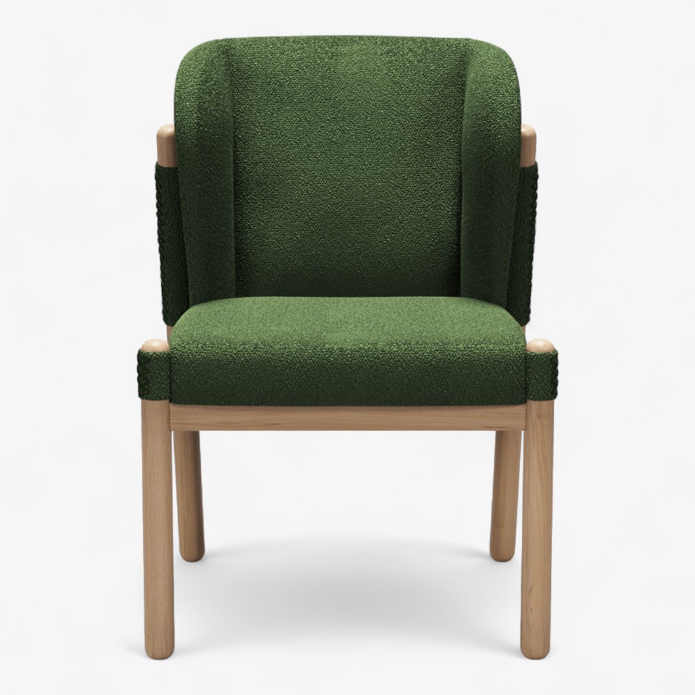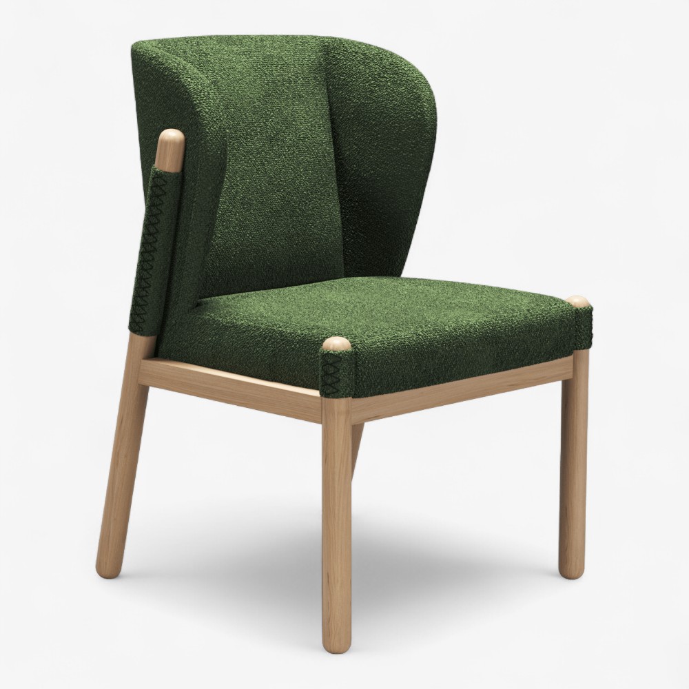 Τα στρογγυλεμένα ξύλινα πόδια και η ταπετσαρισμένη της φόρμα προσδίδουν δυναμική αλλά φιλόξενη αίσθηση — ιδανική για τραπεζαρίες εστιατορίων, αίθουσες συσκέψεων, boutique ξενοδοχεία και σύγχρονους οικιακούς χώρους. Κατασκευασμένη με εργονομία και στυλ, διατίθεται σε ποικιλία υλικών και χρωμάτων για κάθε περιβάλλον.