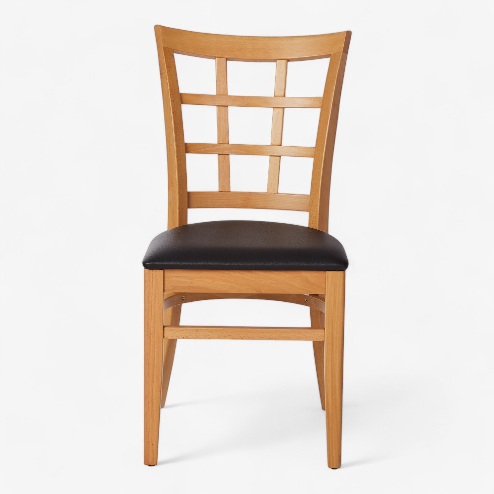 Η Καρέκλα Lattice είναι μια κομψή και ανθεκτική επιλογή καθίσματος, σχεδιασμένη για εστιατόρια, καφέ και επαγγελματικούς χώρους. Με μοναδικό σχεδιασμό πλέγματος στην πλάτη, προσφέρει αισθητική και εργονομική υποστήριξη. Η στιβαρή ξύλινη κατασκευή και το μαξιλαρωτό κάθισμα εγγυώνται άνεση και αντοχή στον χρόνο.