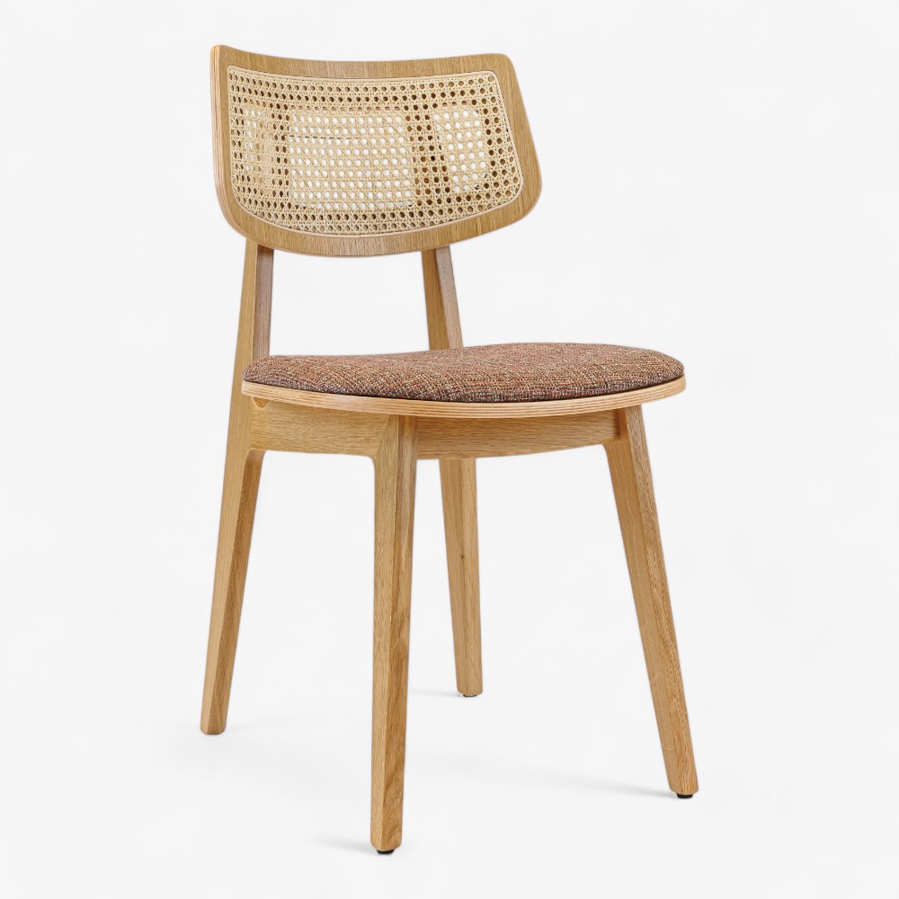 Η καρέκλα Pelle Cane συνδυάζει κομψά φυσικά υλικά και σύγχρονο σχεδιασμό, καθιστώντας την ιδανική για τραπεζαρίες, καφετέριες και άλλους χώρους διαβίωσης. Διαθέτει χειροποίητη ψάθινη πλάτη και ανθεκτικό ξύλινο σκελετό, προσφέροντας άνεση και κομψότητα. Το κάθισμα είναι επενδυμένο με υφασμάτινη υφή που προσθέτει ζεστασιά και χαρακτήρα, ενώ η στιβαρή ξύλινη κατασκευή εξασφαλίζει μακροχρόνια αντοχή. Το μινιμαλιστικό της στυλ ταιριάζει τόσο με μοντέρνα όσο και με ρουστίκ διακόσμηση, καθιστώντας την μια ευέλικτη επιλογή για διάφορους εσωτερικούς χώρους.