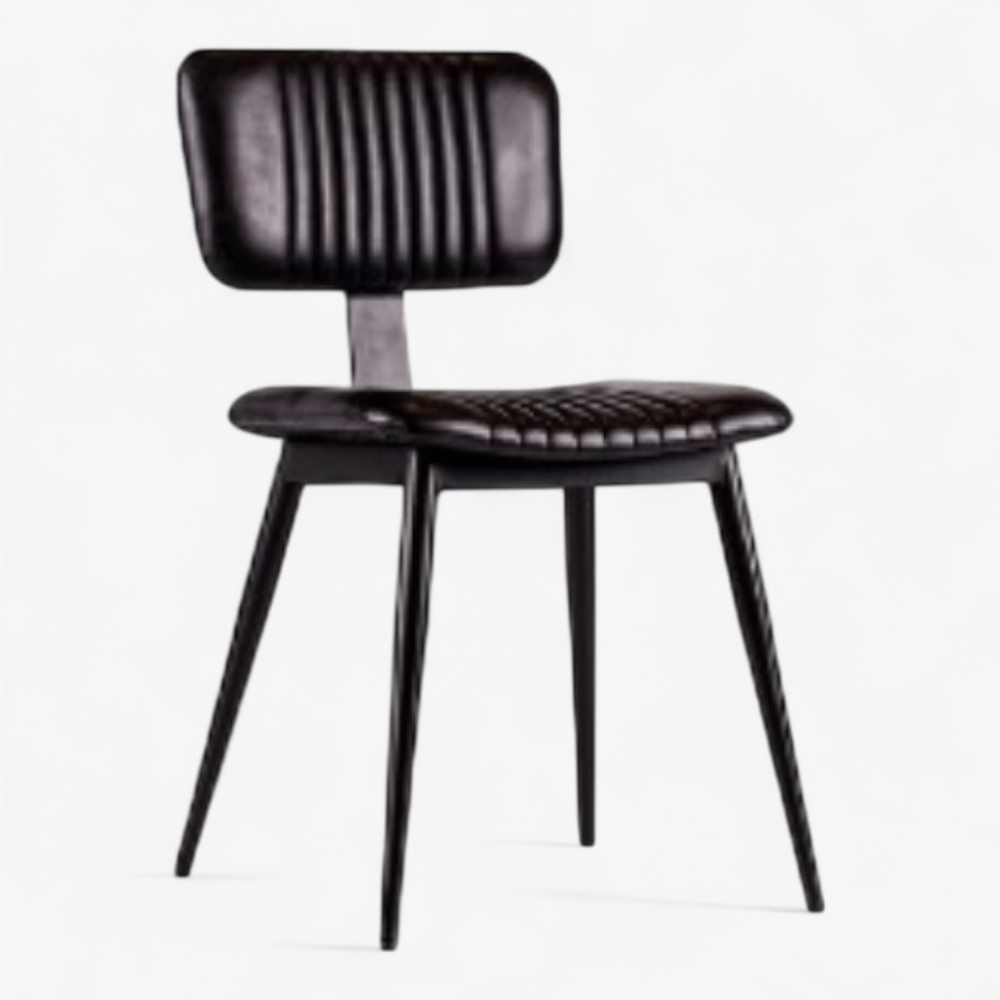 Η καρέκλα Sacha ξεχωρίζει με την κάθετη ραφή στην πλάτη και την επένδυση από δερματίνη, προσφέροντας ρετρό χαρακτήρα. Ο άνετος σχεδιασμός της την καθιστά ιδανική για εστιατόρια, μπαρ ή κομψούς χώρους τραπεζαρίας.