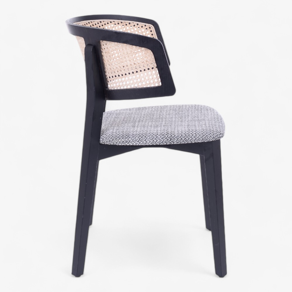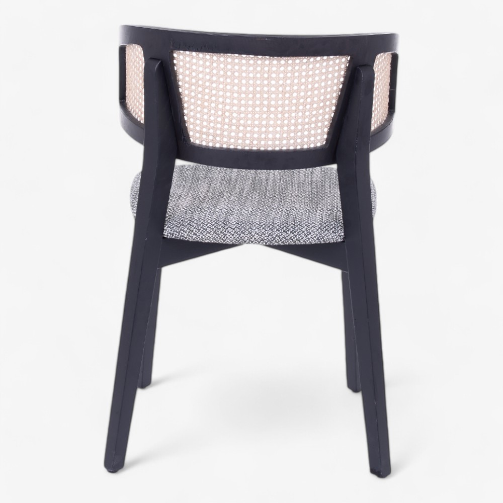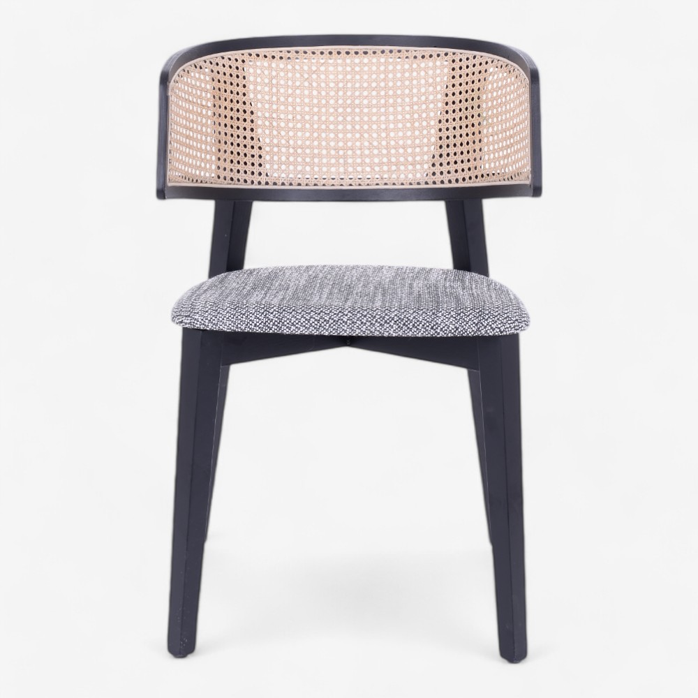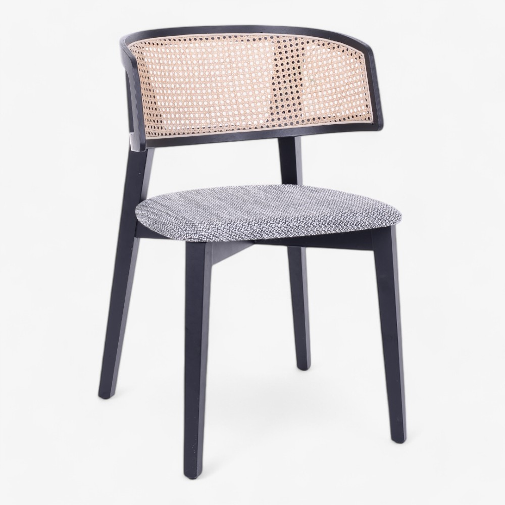 Η Sharon 3 Al Cane είναι μια εκλεπτυσμένη καρέκλα τραπεζαρίας που συνδυάζει διαχρονικό design με σύγχρονη άνεση. Διαθέτει κομψό μαύρο σκελετό, χειροποίητη ψάθινη πλάτη και μαλακό υφασμάτινο κάθισμα με υφή. Ιδανική για επαγγελματικούς και χώρους φιλοξενίας, συνδυάζει αντοχή και στυλ για να αναβαθμίσει κάθε περιβάλλον