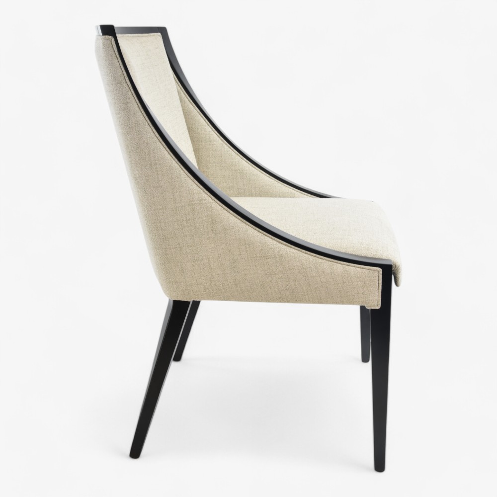 Η καρέκλα Verve φέρνει σύγχρονη κομψότητα στον χώρο σας με το κομψό μαύρο ξύλινο πλαίσιο και την απαλή μπεζ ταπετσαρία. Σχεδιασμένη για στυλ και άνεση, διαθέτει καμπυλωτά μπράτσα που ρέουν αρμονικά με τον σκελετό, προσφέροντας μια μοντέρνα αρχιτεκτονική αισθητική. Το μαλακό κάθισμα και η πλάτη παρέχουν εξαιρετική υποστήριξη, καθιστώντας την ιδανική για τραπεζαρίες, γραφεία ή κομψούς χώρους υποδοχής. Η καρέκλα Verve είναι ένα διαχρονικό κομμάτι που συνδυάζει τον μινιμαλισμό με την εκλεπτυσμένη πολυτέλεια, ιδανική για σύγχρονους και μεταβατικούς χώρους.