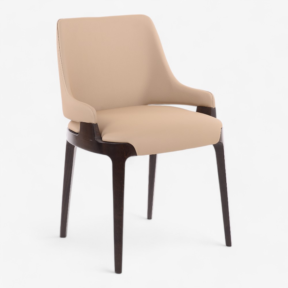 Η καρέκλα Vincent εκφράζει τη σύγχρονη κομψότητα με το λεπτό σκούρο ξύλινο πλαίσιο και την πολυτελή μπεζ ταπετσαρία της. Διαθέτοντας διακριτικά καμπυλωτά μπράτσα και άνετο, υποστηρικτικό κάθισμα, συνδυάζει αρμονικά τη μορφή με τη λειτουργικότητα. Οι καθαρές γραμμές και ο εργονομικός της σχεδιασμός την καθιστούν ιδανική για τραπεζαρίες, επαγγελματικούς χώρους ή κομψά εσωτερικά. Η καρέκλα Vincent αποτελεί υπόδειγμα διακριτικής φινέτσας, προσθέτοντας μια νότα πολυτέλειας σε κάθε χώρο.