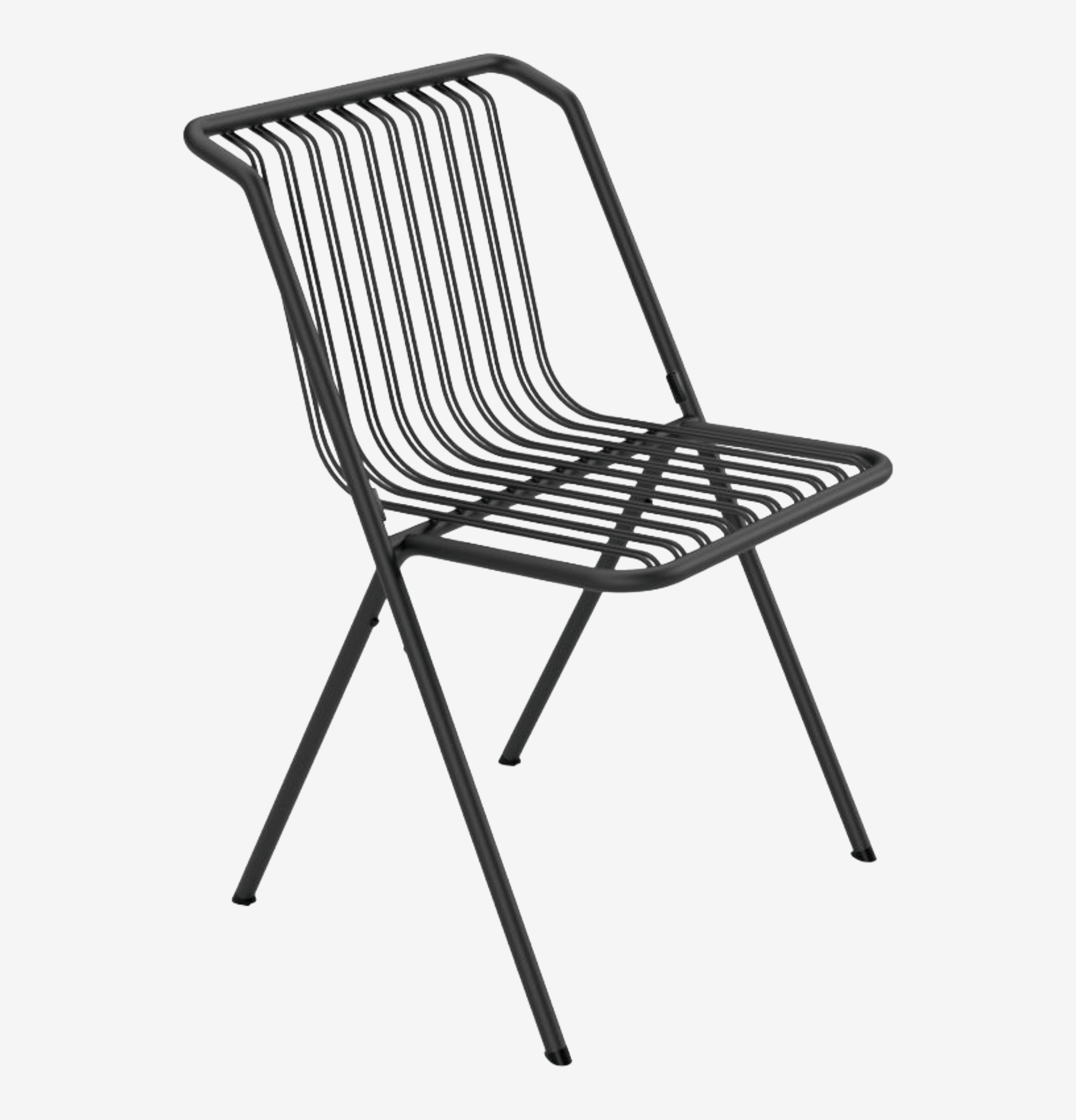 Μινιμαλιστική, εξαιρετικά στοιβαζόμενη μεταλλική καρέκλα.