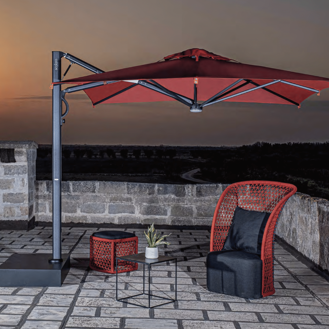 Η ομπρέλα ASTRO CARBON συνδυάζει την καινοτομία με τη διαχρονική κομψότητα. ​​Διαθέτει σύστημα ανοίγματος και κλεισίματος με αμορτισέρ αερίου που το καθιστά εύκολο στη χρήση, ακόμη και όταν τοποθετείται πάνω από τραπέζια και καρέκλες χωρίς να χρειάζεται να μετακινήσετε έπιπλα.