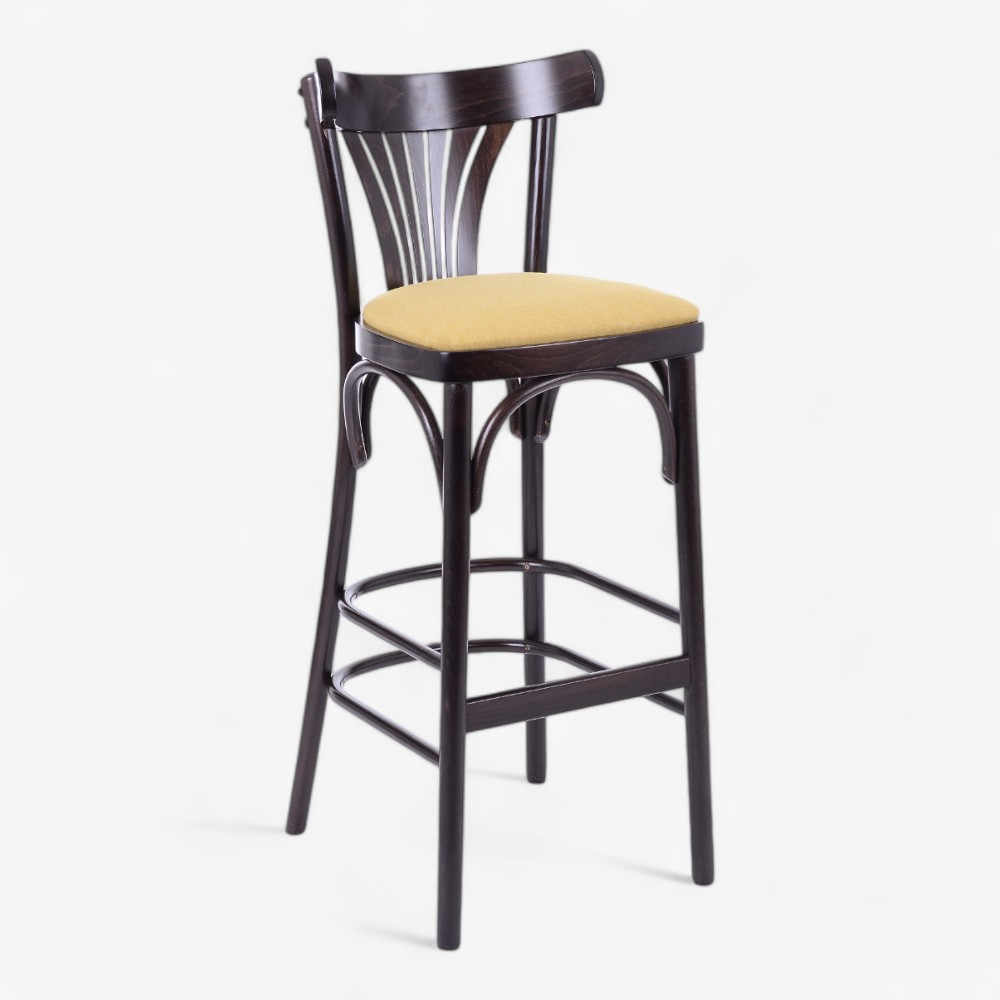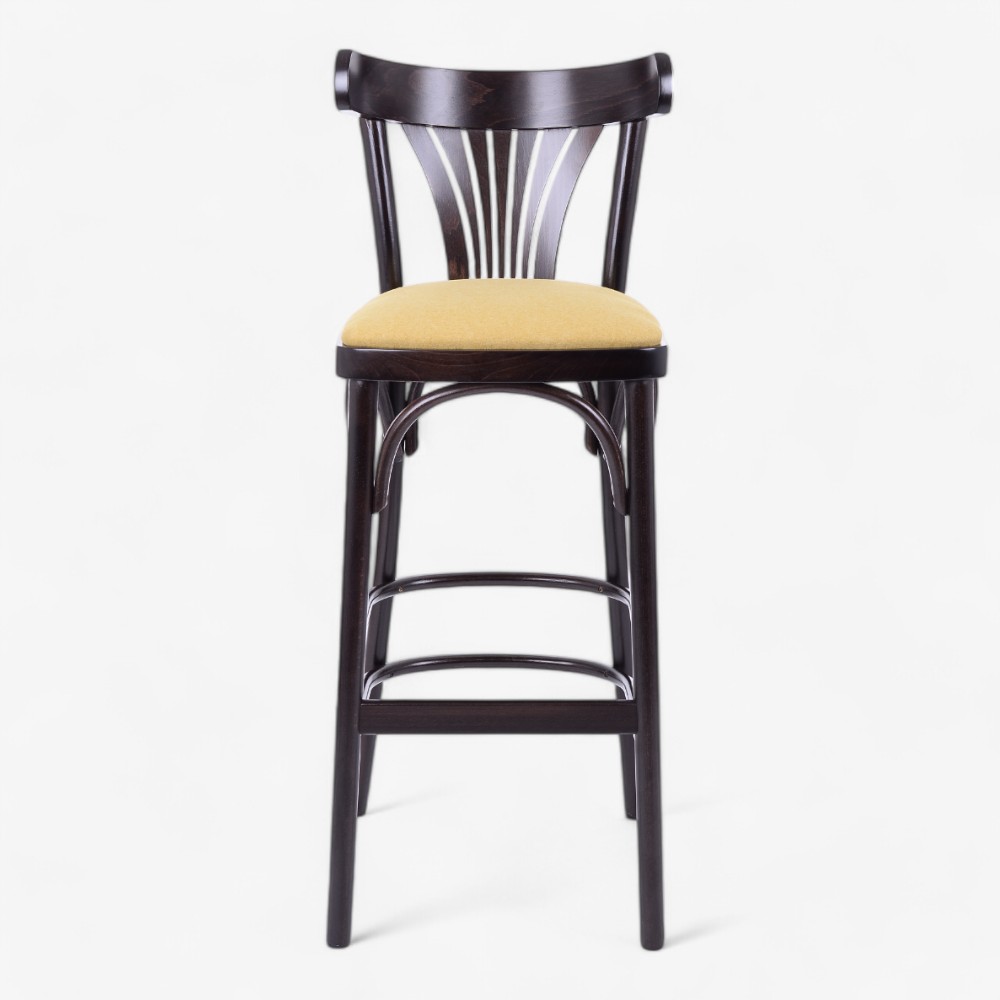 Το σκαμπό μπαρ 154BP συνδυάζει διαχρονική κομψότητα με επιπλέον άνεση, διαθέτοντας επενδυμένο κάθισμα πάνω στο κλασικό ξύλινο πλαίσιό του. Με πλάτη σε σχήμα βεντάλιας και ανθεκτικά πόδια, προσφέρει στυλ και στήριξη, καθιστώντας το ιδανικό για μπαρ, καφέ και εστιατόρια. Το ταπετσαρισμένο κάθισμα εξασφαλίζει μεγαλύτερη άνεση, ενώ η στιβαρή κατασκευή εγγυάται μακροχρόνια αντοχή σε επαγγελματικούς χώρους. Διατίθεται σε διάφορες επιλογές ταπετσαρίας για να ταιριάζει σε κάθε εσωτερική διακόσμηση.