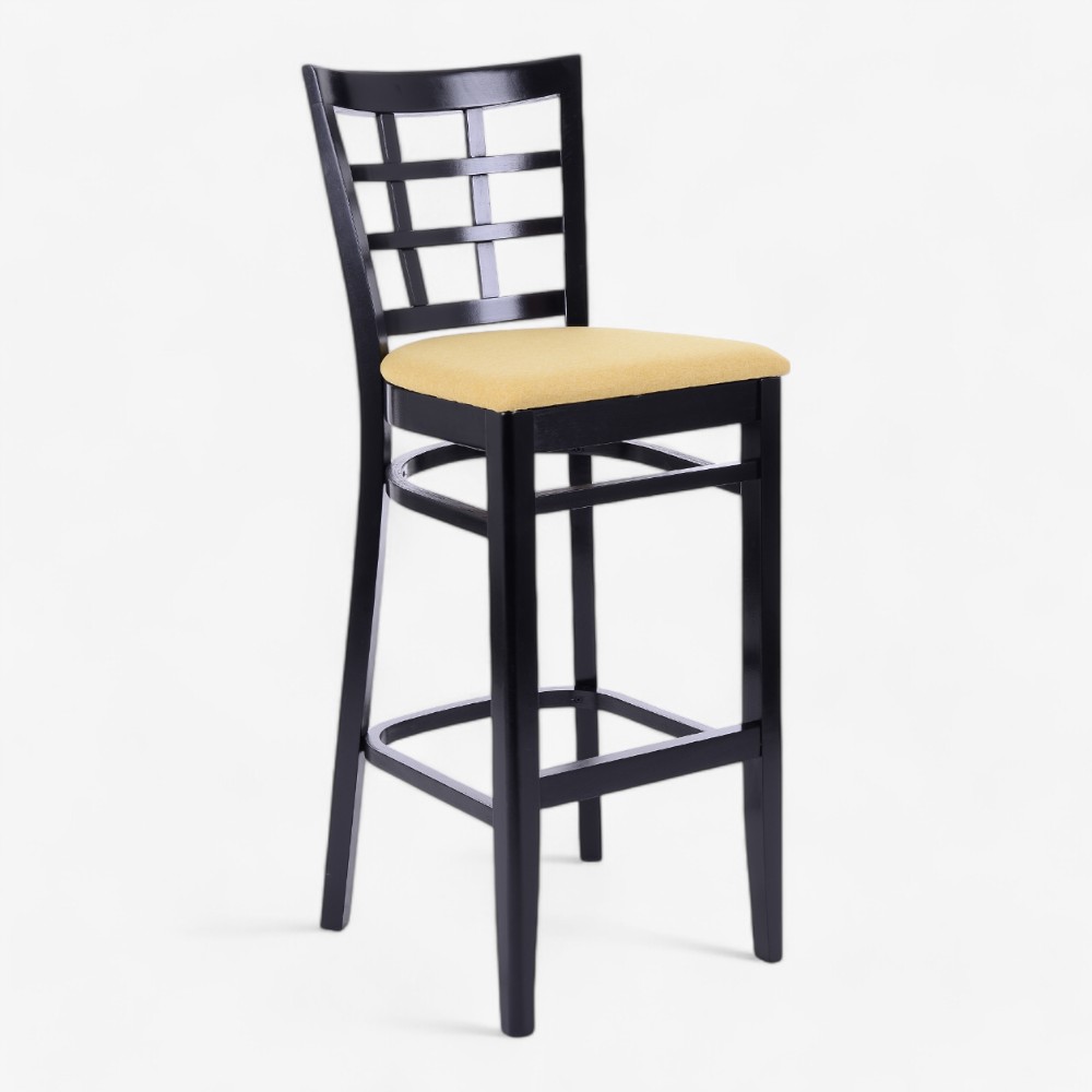 Κομψό σκαμπό μπαρ με σχέδιο πλέγματος στην πλάτη.