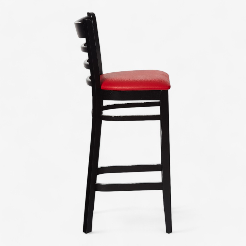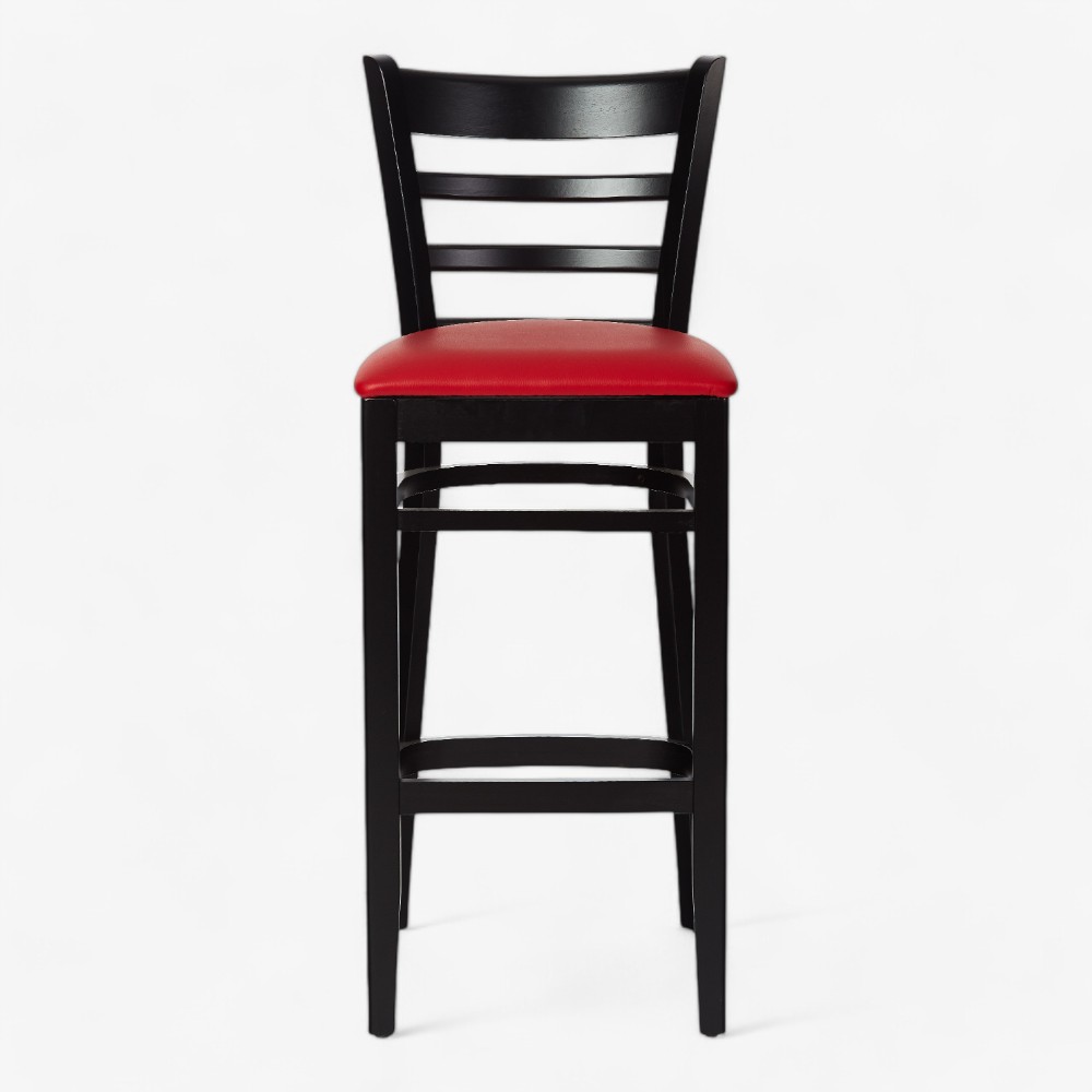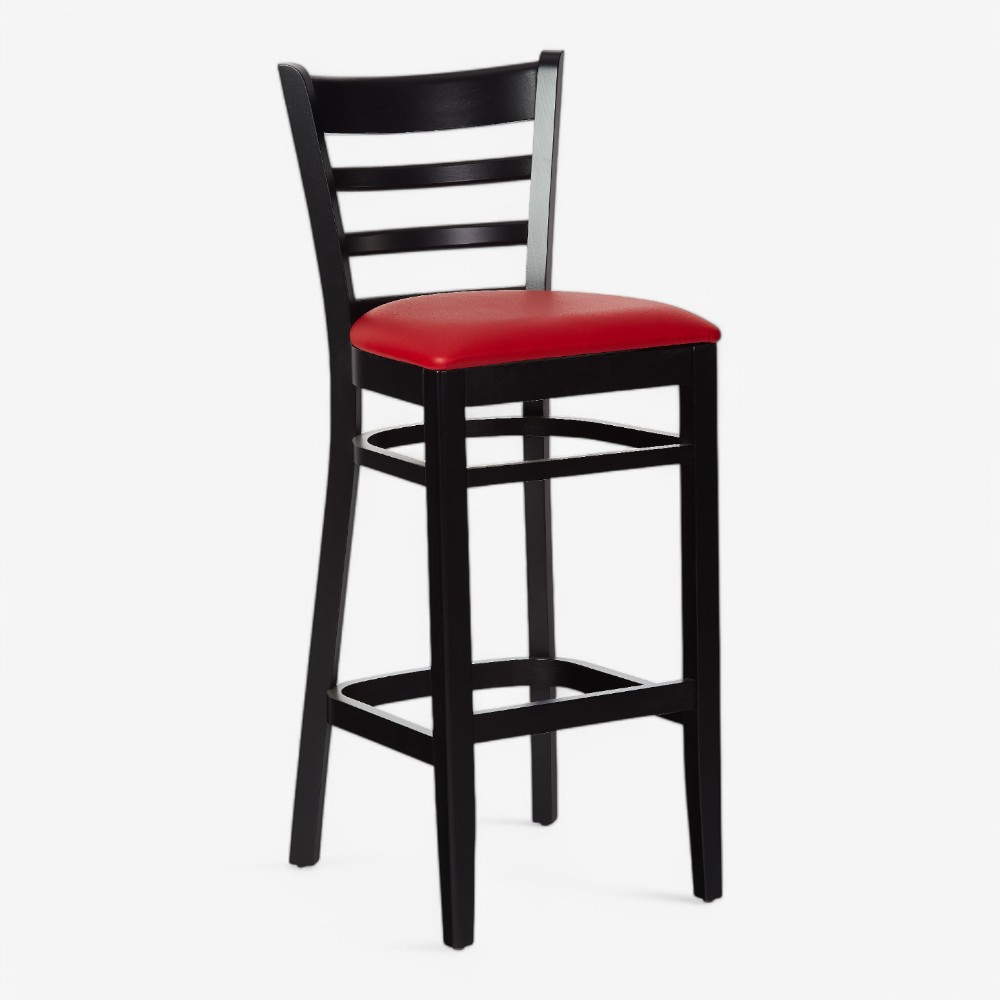 Κομψό ξύλινο σκαμπό μπαρ με μαξιλαρωτό κάθισμα.