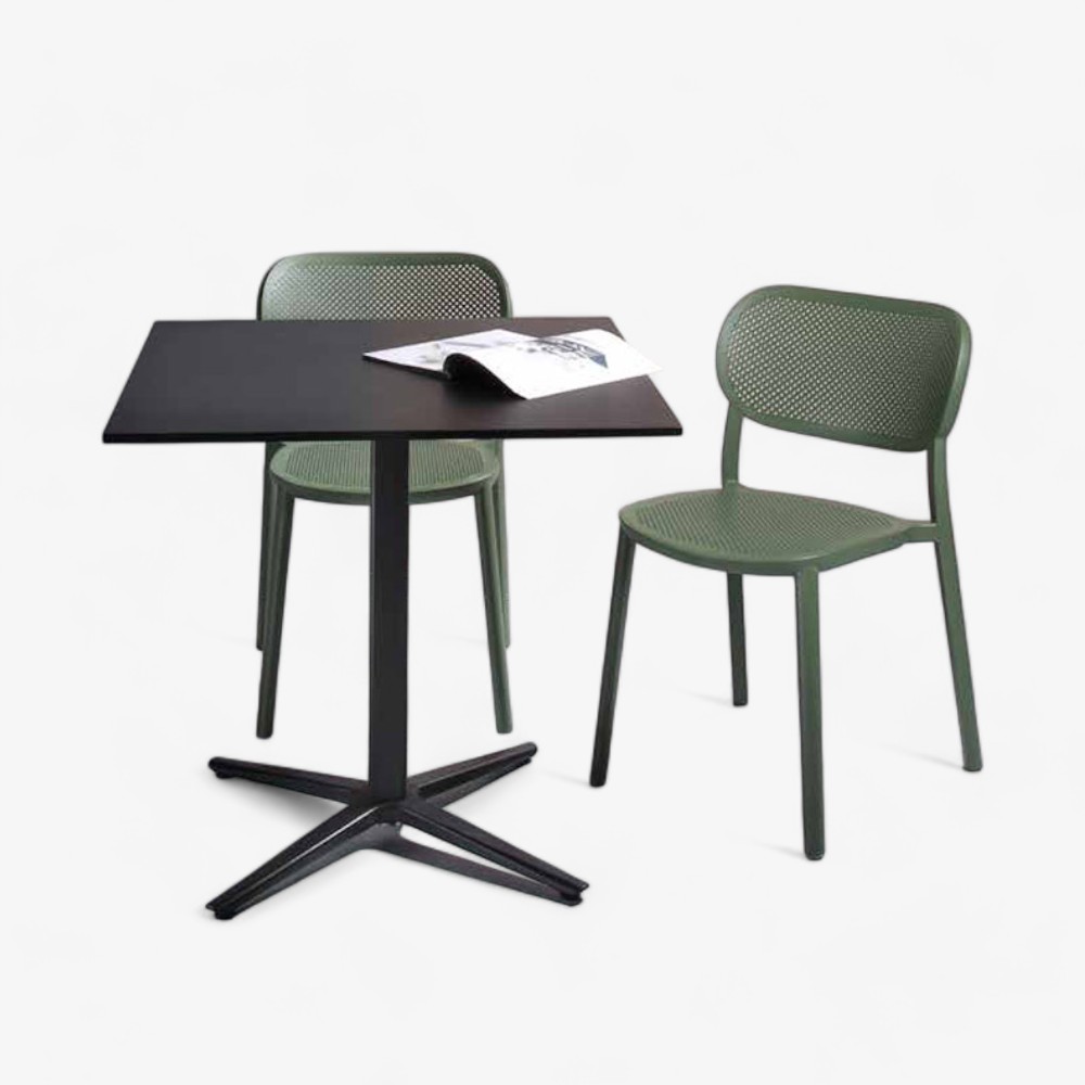 Αναβαθμίστε τον χώρο σας με το πολυχρηστικό τετράγωνο τραπέζι της συλλογής Hug, ιδανικό για εσωτερικούς και εξωτερικούς χώρους. Αυτό το τραπέζι διαθέτει ανθεκτικές επιφάνειες Compactop ή Iron για εξωτερική χρήση και κομψές επιφάνειες Laminate για εσωτερικούς χώρους. Η στιβαρή βάση αλουμινίου με ρυθμιζόμενα πόδια εξασφαλίζει σταθερότητα σε κάθε επιφάνεια, ενώ η κομψή κολώνα και η διασταύρωση από αλουμίνιο προσθέτουν μια πινελιά μοντέρνας κομψότητας. Ιδανικό για κάθε περιβάλλον, από χαλαρές βεράντες έως εκλεπτυσμένους χώρους εστίασης, αυτό το τραπέζι συνδυάζει άψογα τη λειτουργικότητα με το στυλ. Επιλέξτε το τετράγωνο τραπέζι Hug για να αναδείξετε τον χώρο σας με τον σύγχρονο σχεδιασμό και την ανθεκτική ποιότητά του.