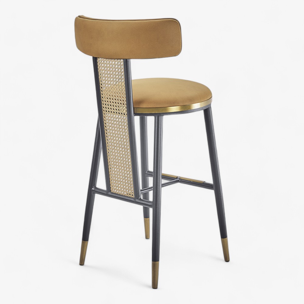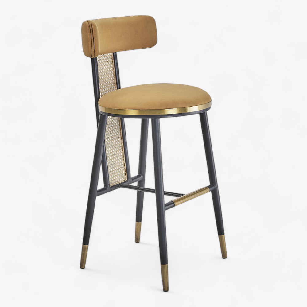 Αναβαθμίστε την εμπειρία καθίσματος με το σκαμπό Candy, όπου ο μοντέρνος σχεδιασμός συναντά την εξαιρετική άνεση. Το σκαμπό διαθέτει μαξιλάρι στο κάθισμα και στην πλάτη, επενδεδυμένο σε ζεστή μουσταρδί απόχρωση για μια απαλή και άνετη επιλογή καθίσματος. Το κομψό μεταλλικό πλαίσιο σε μαύρο ματ χρώμα με μπρούτζινες λεπτομέρειες προσδίδει έναν αέρα εκλεπτυσμένου στυλ. Η προσθήκη ενός πλεκτού στοιχείου στην πλάτη ενισχύει ακόμη περισσότερο την αισθητική του. Με τον ευέλικτο σχεδιασμό του, το σκαμπό Candy είναι ιδανικό τόσο για οικιακούς όσο και για επαγγελματικούς χώρους, ενσωματώνοντας αρμονικά σε κουζίνες, μπαρ ή κάθε σύγχρονο περιβάλλον.