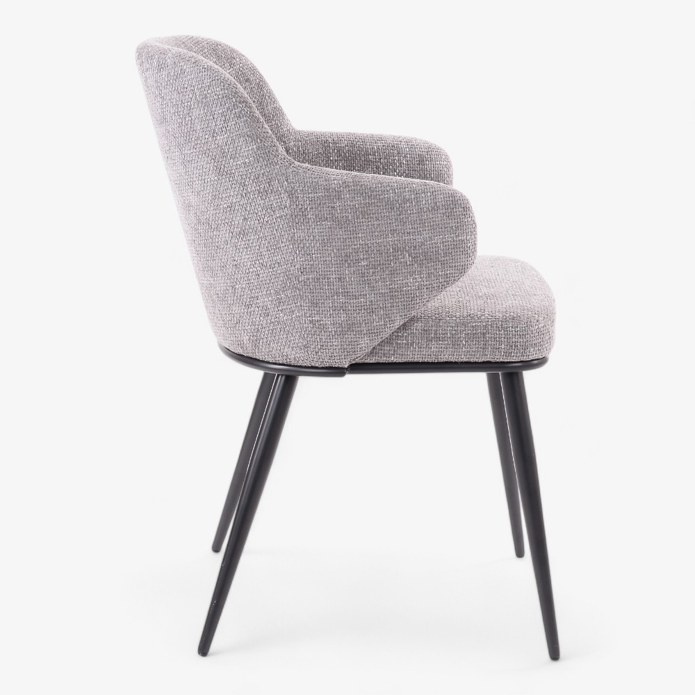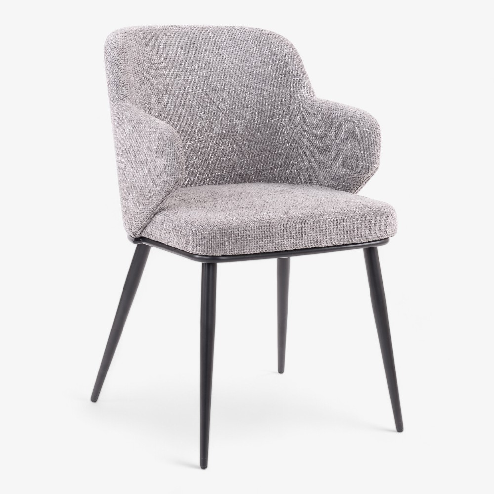 Η πολυθρόνα Casey M συνδυάζει μοντέρνα αισθητική με απόλυτη άνεση. Διαθέτει απαλή υφασμάτινη επένδυση σε γκρι χρώμα και προσφέρει εξαιρετική στήριξη με την ψηλή πλάτη και τα καμπύλα μπράτσα της. Τα κομψά μαύρα μεταλλικά πόδια προσφέρουν σταθερότητα ενώ ενισχύουν τη σύγχρονη εμφάνιση της καρέκλας. Είτε τοποθετηθεί σε τραπεζαρίες, καθιστικούς χώρους ή γραφεία, η Casey M προσθέτει μια πινελιά κομψότητας και μοντέρνου στυλ σε κάθε εσωτερικό χώρο.