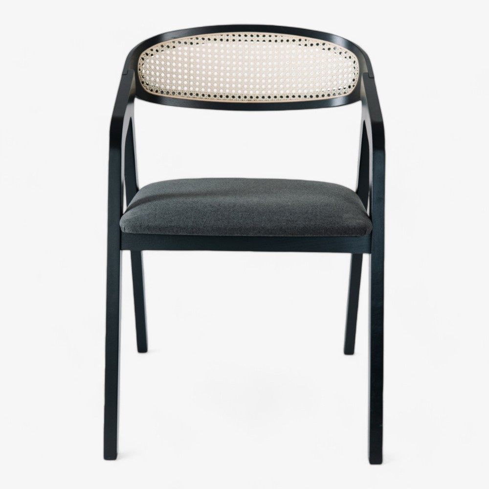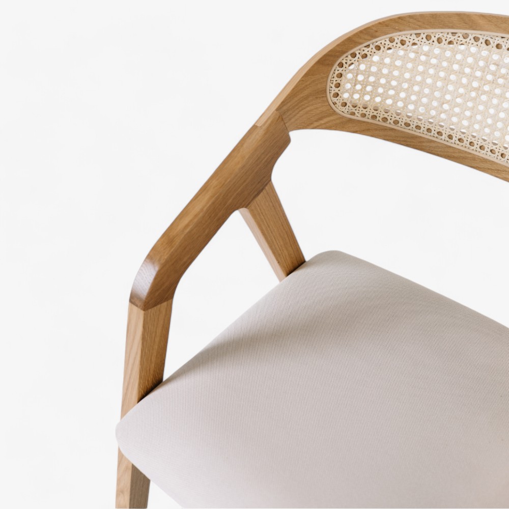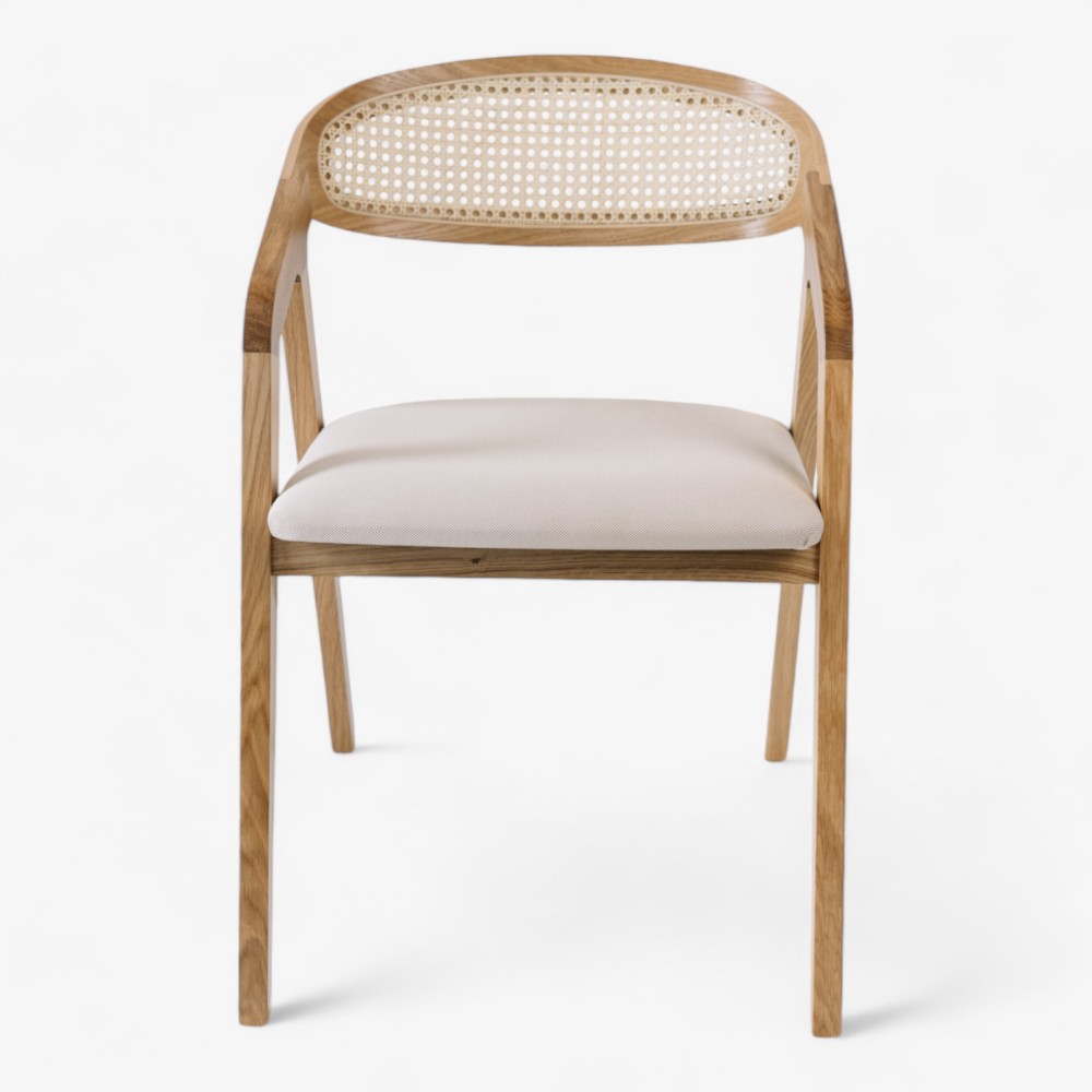 Η πολυθρόνα Frame Crane συνδυάζει μοναδικά την κλασική τέχνη με το σύγχρονο σχεδιασμό. Διαθέτει κομψό ξύλινο σκελετό με καμπύλα μπράτσα και ψάθινη πλάτη, προσφέροντας τόσο άνεση όσο και στυλ. Το κάθισμα είναι επενδυμένο με μαλακή ταπετσαρία, καθιστώντας την ιδανική επιλογή για τραπεζαρίες, σαλόνια ή γραφεία. Αυτή η ευέλικτη πολυθρόνα αποτελεί μια κομψή προσθήκη σε κάθε χώρο, προσφέροντας τόσο αισθητική όσο και ανθεκτικότητα.