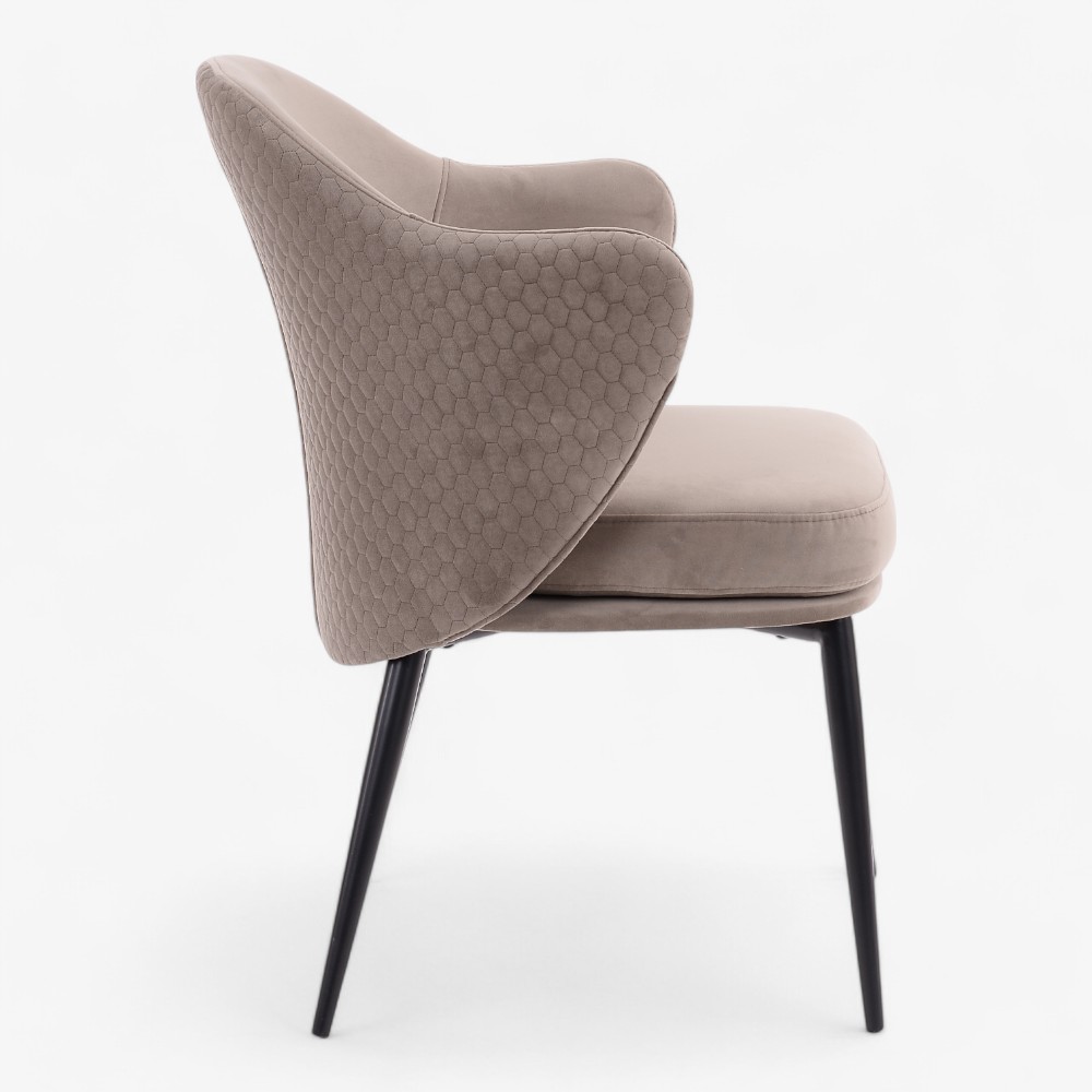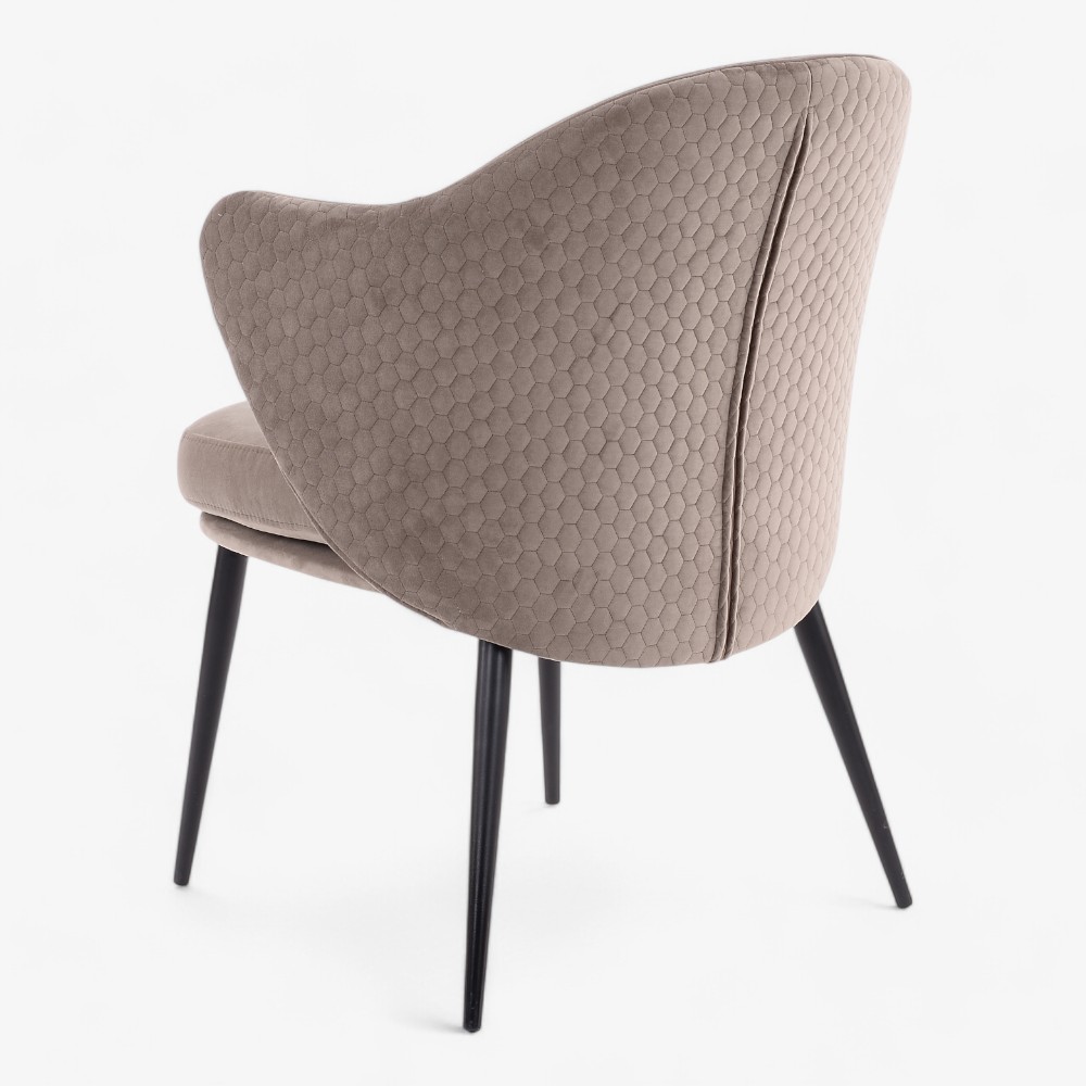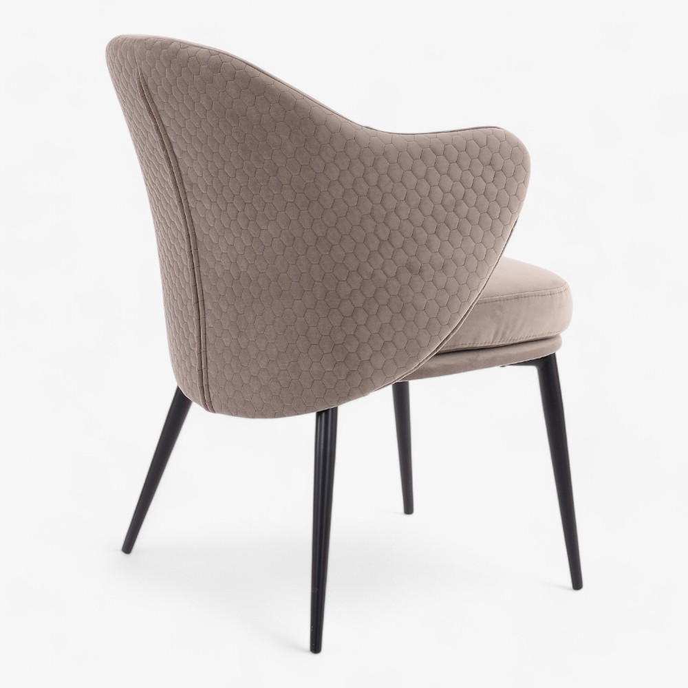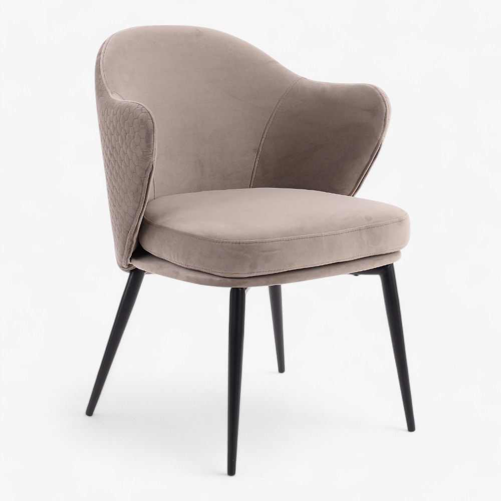 Η πολυθρόνα Maryam προσφέρει τον τέλειο συνδυασμό κομψότητας και άνεσης. Επενδεδυμένη με απαλό βελούδο σε απόχρωση ταμπά, διαθέτει καμπυλωτή πλάτη με κομψές καπιτονέ λεπτομέρειες στα πλαϊνά, προσδίδοντας ένα εκλεπτυσμένο ύφος. Το μαξιλαρωτό κάθισμα εξασφαλίζει άνεση για παρατεταμένη χρήση, ενώ τα κομψά μαύρα μεταλλικά πόδια προσθέτουν μια σύγχρονη πινελιά στον σχεδιασμό της. Ιδανική για σαλόνια, υπνοδωμάτια ή γραφεία, η πολυθρόνα Maryam αποτελεί μια ευέλικτη προσθήκη σε κάθε χώρο, αναβαθμίζοντας την ατμόσφαιρα με το πολυτελές της στυλ.