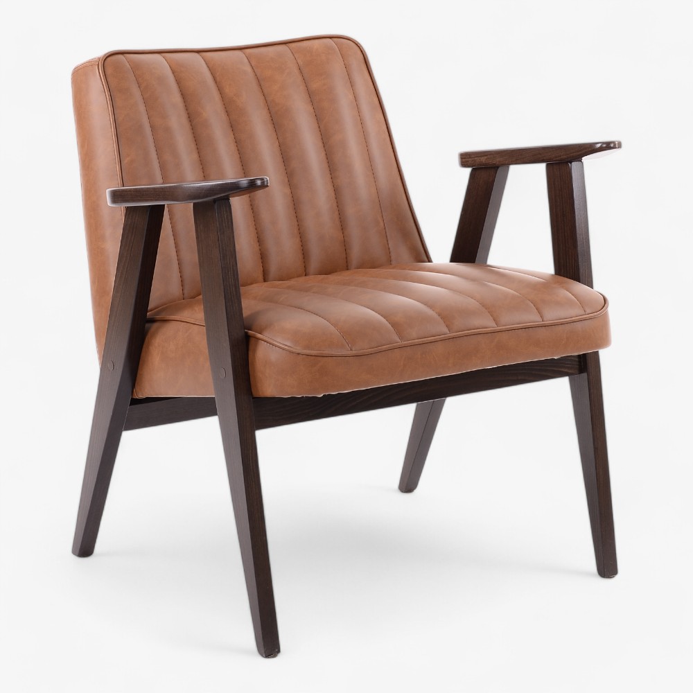 Η πολυθρόνα Memphis ενσωματώνει έναν συνδυασμό mid-century μοντέρνας αισθητικής με ρετρό γοητεία. Επενδεδυμένη με υψηλής ποιότητας ταμπά δέρμα, διαθέτει κάθετες ραφές που προσθέτουν μια νότα κομψότητας. Ο στιβαρός ξύλινος σκελετός με γωνιώδη πόδια και ξύλινα μπράτσα προσφέρει στήριξη, ενώ αναδεικνύει το vintage ύφος της. Το μαλακό κάθισμα και η πλάτη εξασφαλίζουν άνεση, καθιστώντας την πολυθρόνα Memphis ιδανική για σαλόνια, γραφεία ή καθιστικά. Με τον κομψό σχεδιασμό και την άνεση που προσφέρει, αυτή η πολυθρόνα συνδυάζει αρμονικά λειτουργικότητα και στυλ.